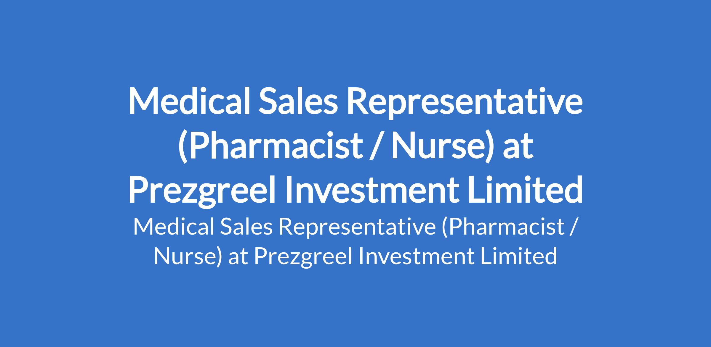 Prezgreel Investment Limited is recruiting to fill the position of: Medical Sales Representative (Pharmacist / Nurse). The position is located in Abuja (FCT). Interested candidates should possess a Bachelor's Degree in a Medical related field (Pharmacist/Nurse), with a minimum of 3 years of field sales experience, especially in the Medical / Pharmaceutical Sector, and must be resident in Abuja and familiar with the locations of health institutions in the FCT.