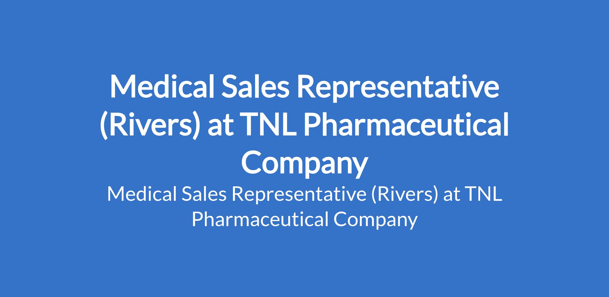 Medical Sales Representative (Rivers) at TNL Pharmaceutical Company