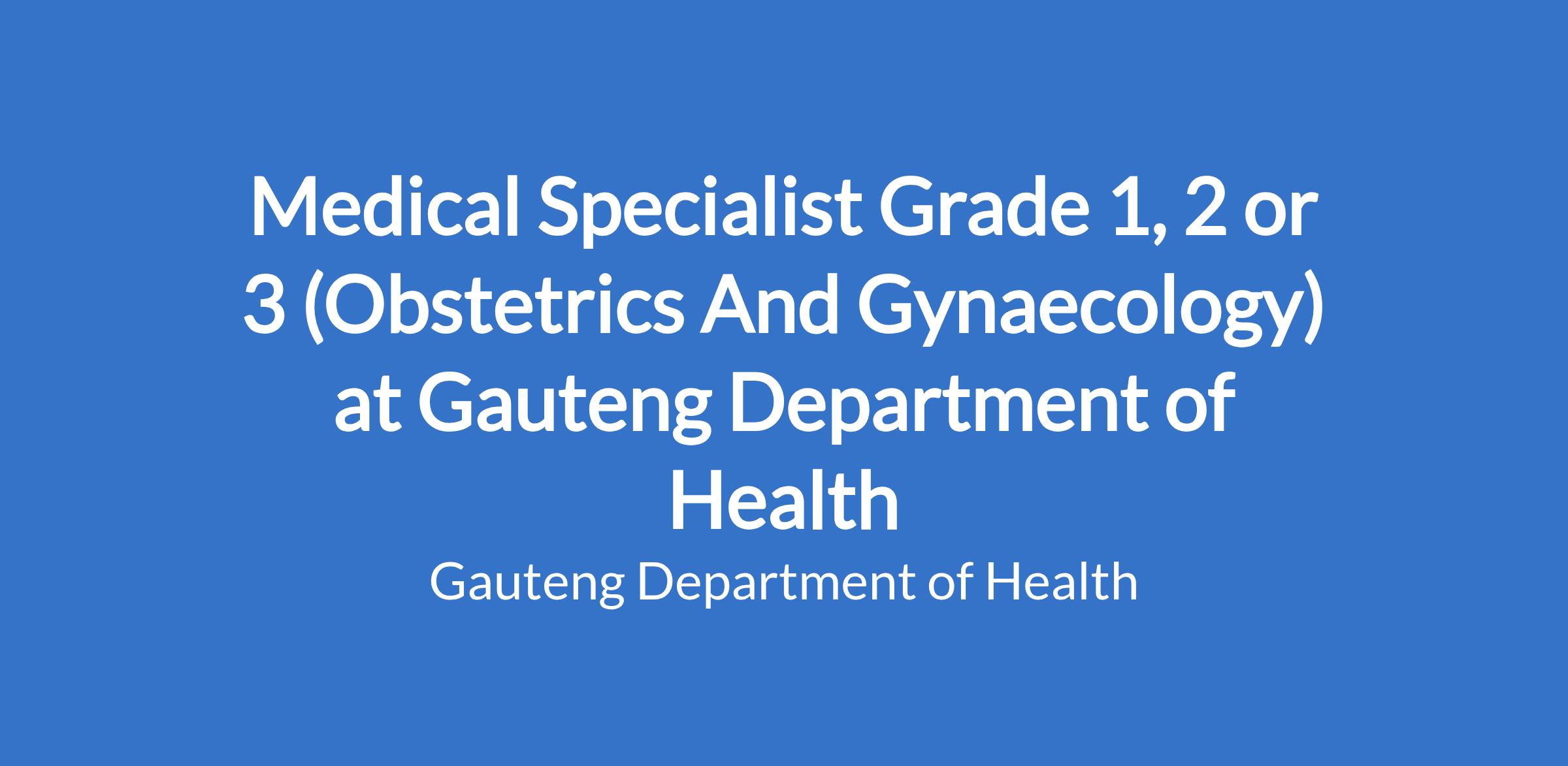GRADE 1: No experience required after registration with the HPCSA as Specialist in Obstetrics and Gynaecology.