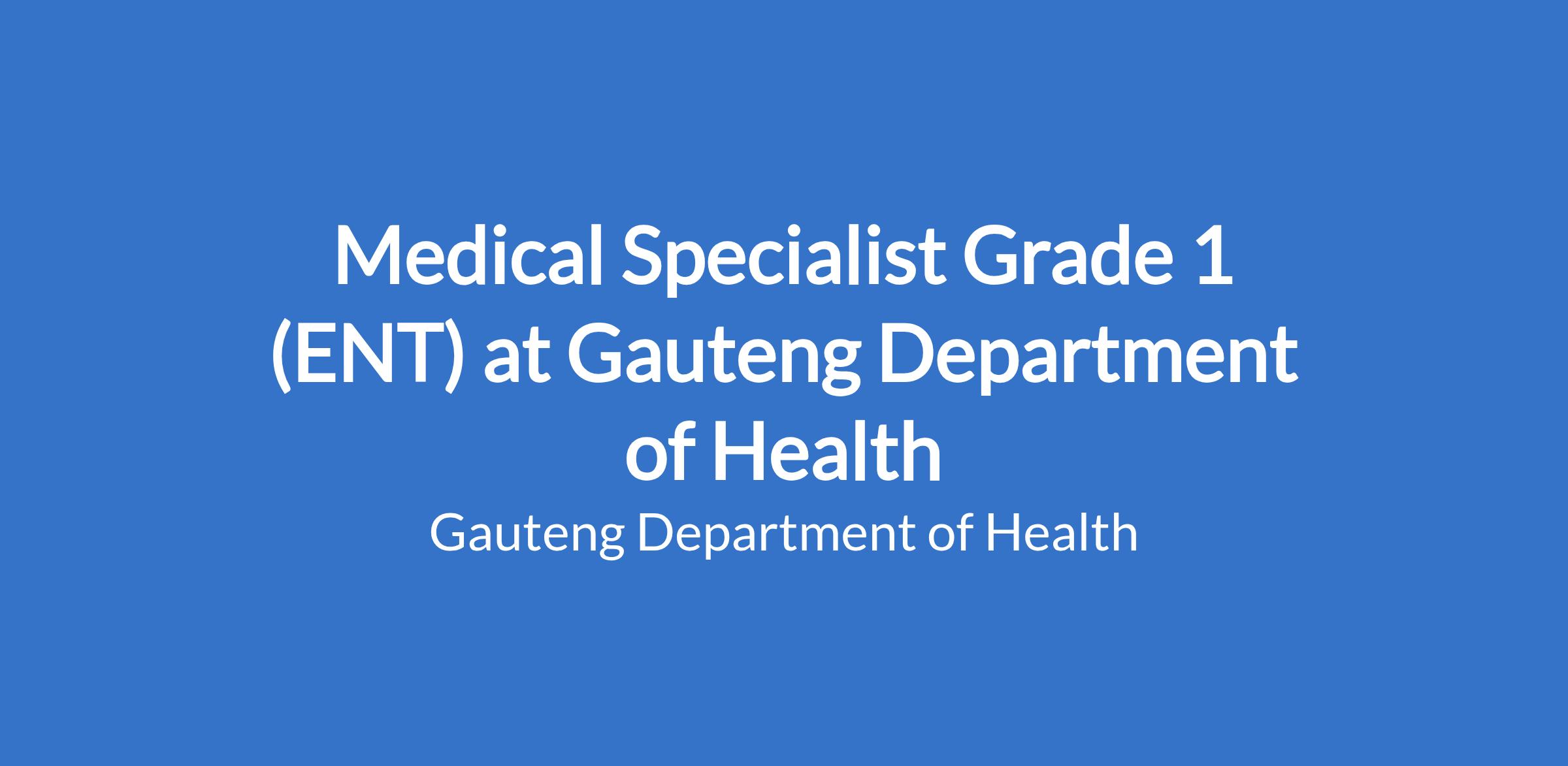 An appropriate qualification that allows registration with the HPCSA as a Medical Specialist in Otorhinolaryngology - Head and Neck Surgery (ENT). Current registration as an independent Specialist Otorhinolaryngologist with the HPCSA. Previous experience will be an added advantage.