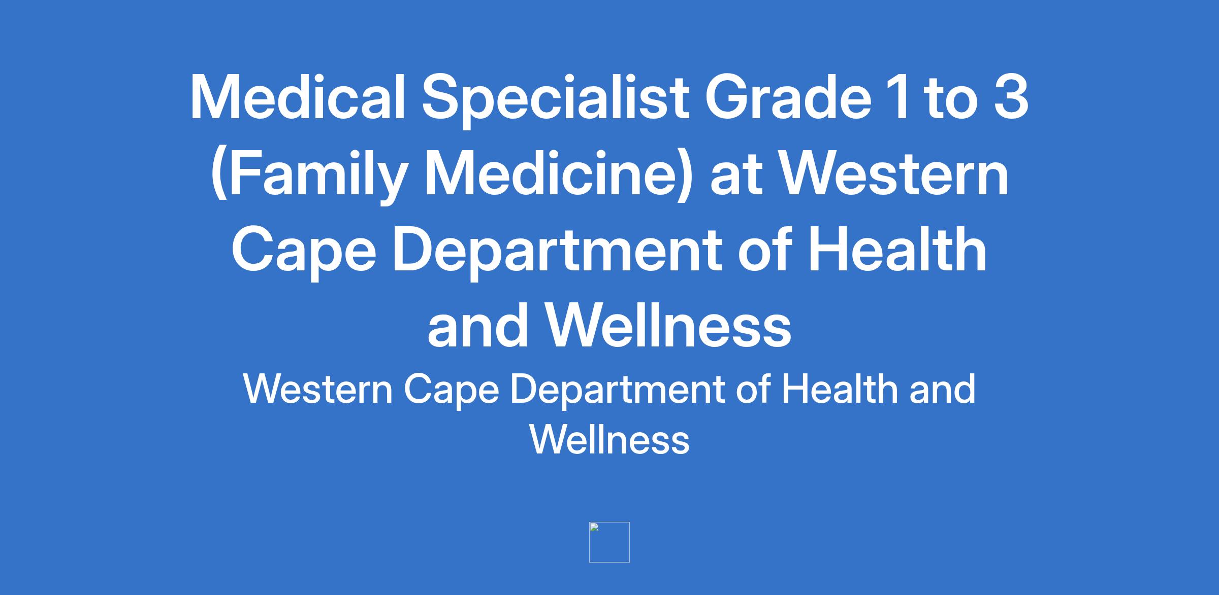 Grade 2: A minimum of 5 years' appropriate experience as Medical Specialist after registration with the HPCSA (or recognised foreign Health Professional Council in respect of foreign qualified employees) as Medical Specialist in Family Medicine.