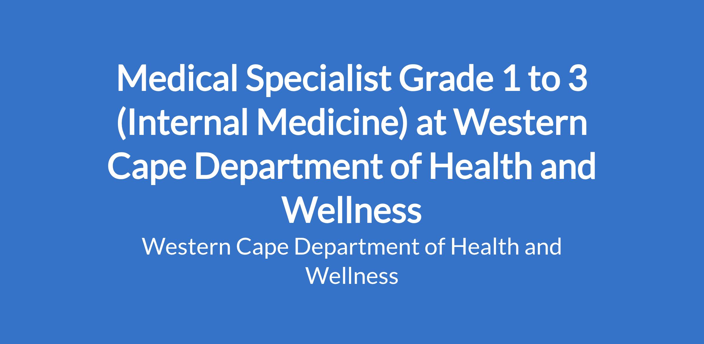 Grade 1: None after registration with the HPCSA as a Medical Specialist in Internal Medicine. Grade 2: A minimum of 5 years' appropriate experience as Medical Specialist in Internal Medicine, after registration with the HPCSA (or a recognized foreign Health Professional Council in respect of a foreign qualified employee). Grade 3: A minimum of 10 years' appropriate experience as Medical Specialist in Internal Medicine, after registration with the HPCSA (or a recognized foreign Health Professional Council in respect of a foreign qualified employee).