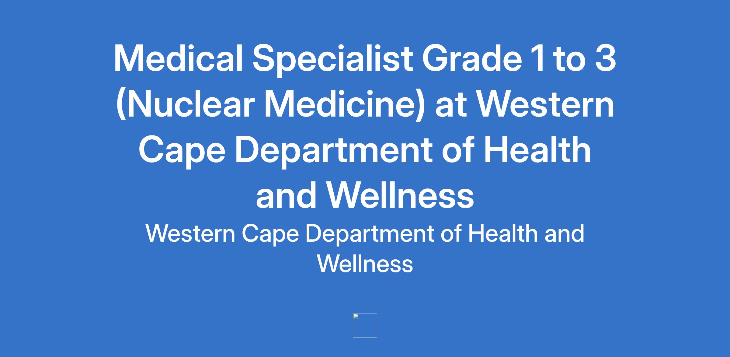 Grade 2: A minimum of 5 years' appropriate experience as Medical Specialist after registration with the HPCSA (or a recognised foreign Health Professional Council in respect of a foreign qualified employee) as a Medical Specialist in Nuclear Medicine.