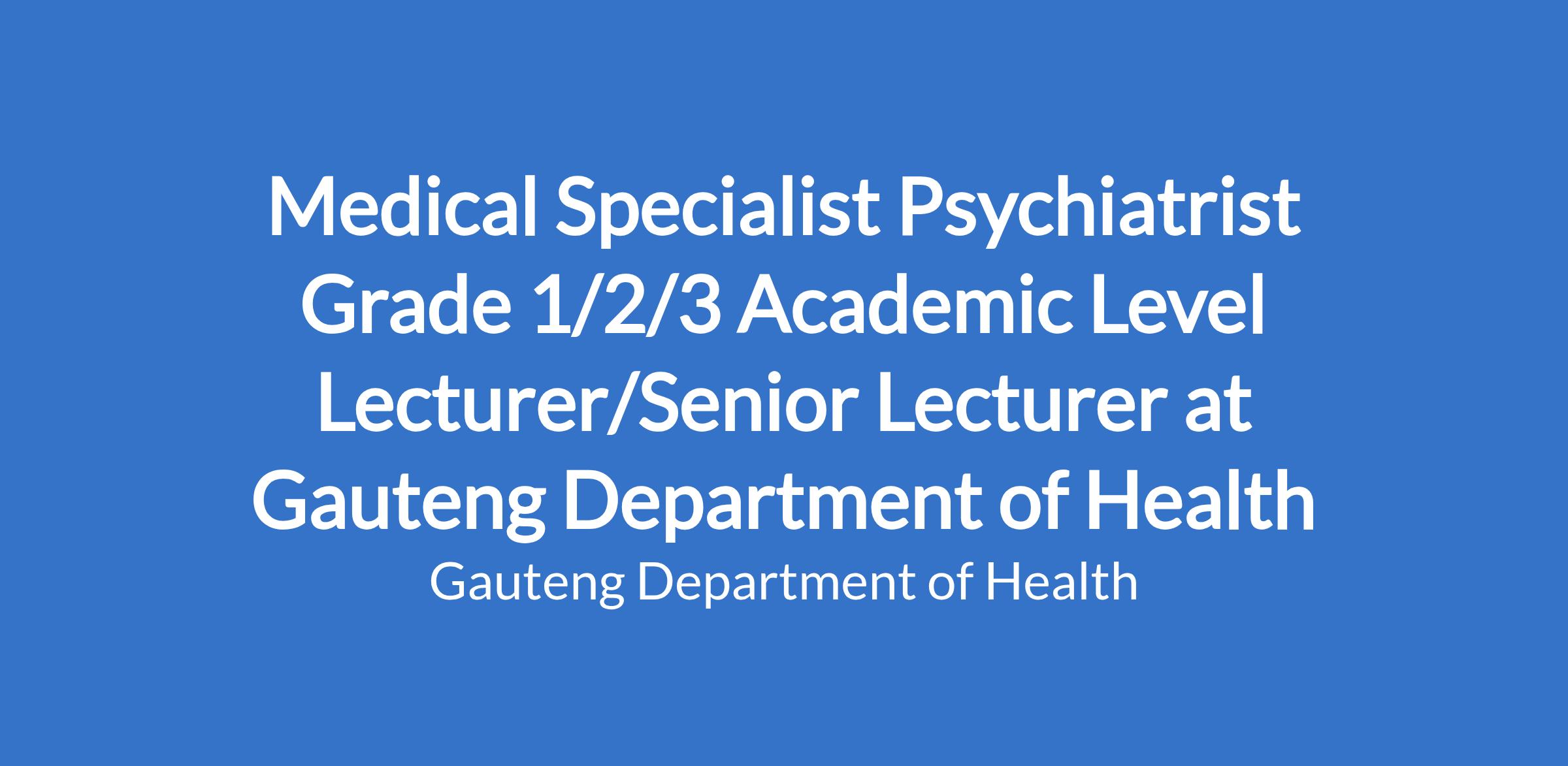 Medical Specialist Psychiatrist Grade 1/2/3 Academic Level Lecturer/Senior Lecturer at Gauteng Department of Health