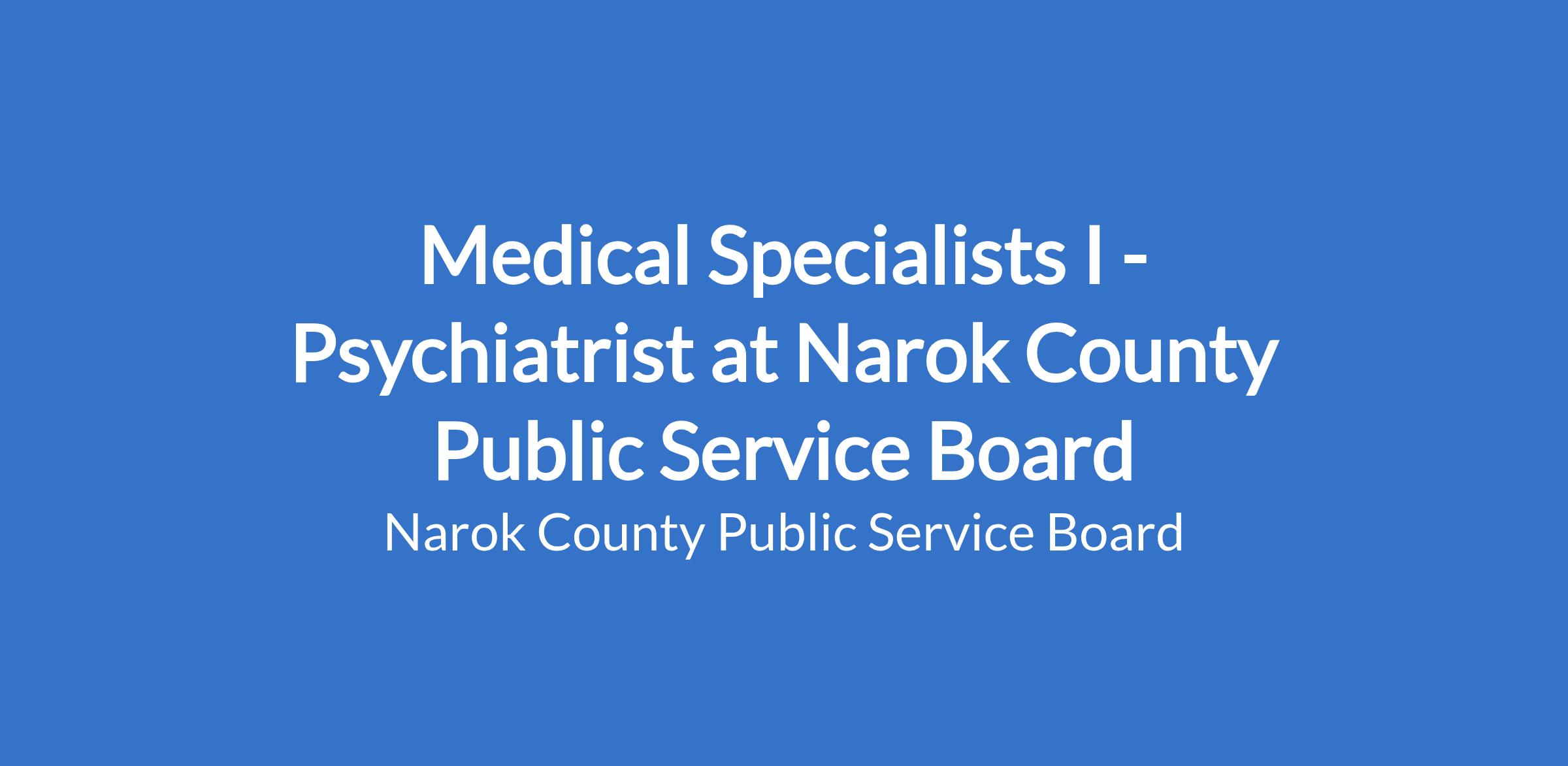 Medical Specialists I - Psychiatrist at Narok County Public Service Board