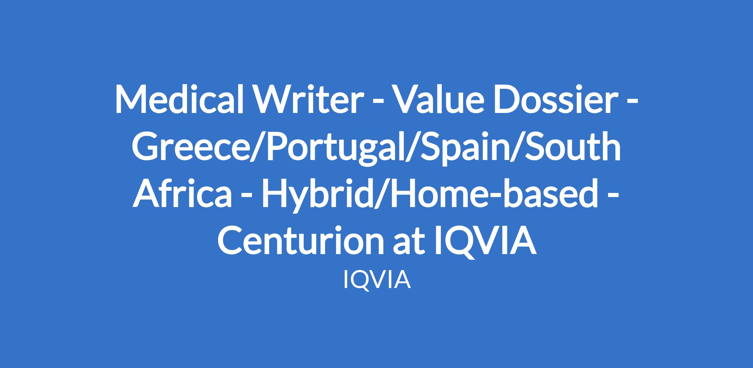 Medical Writer - Value Dossier - Greece/Portugal/Spain/South Africa - Hybrid/Home-based - Centurion at IQVIA
