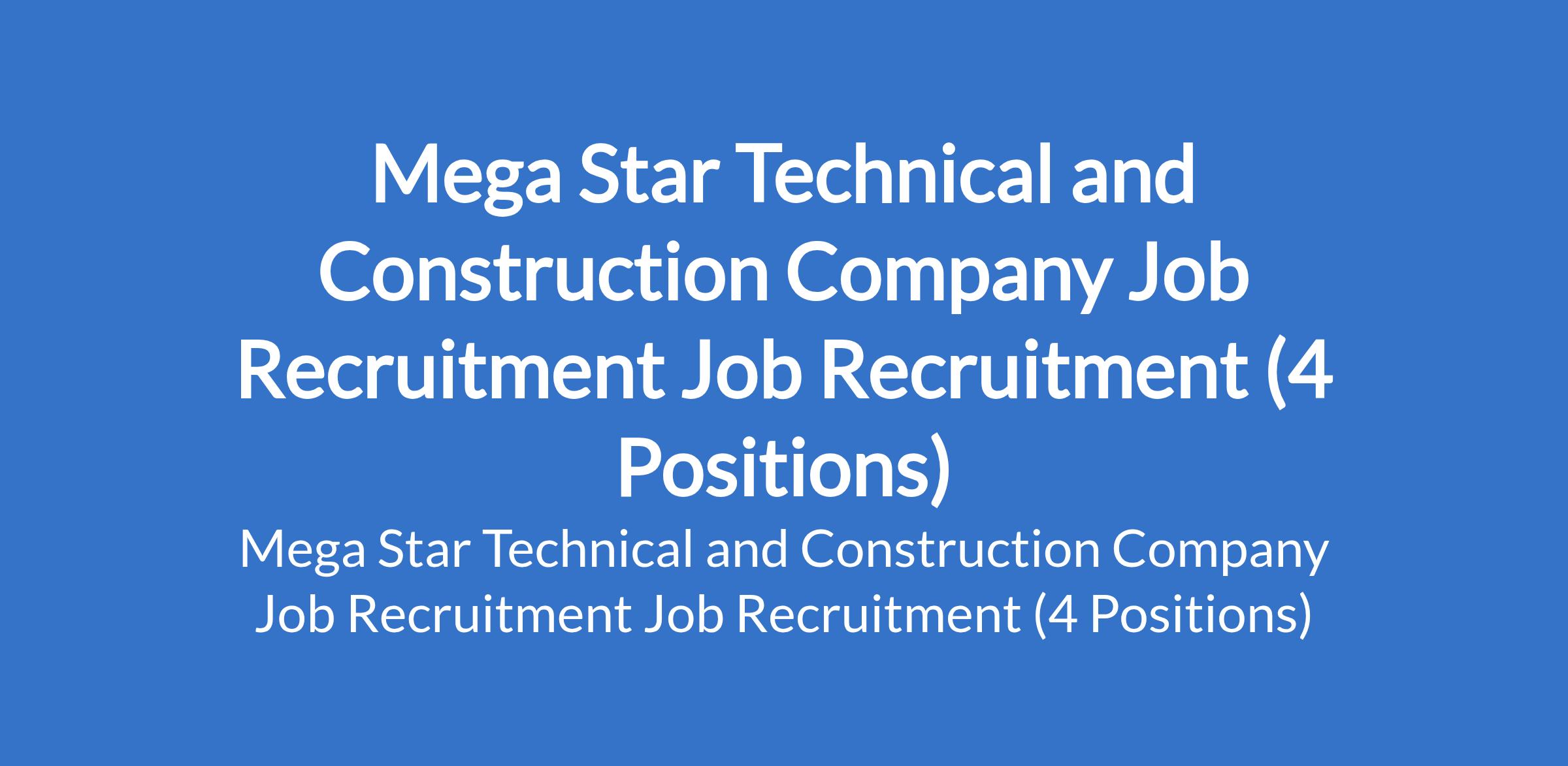 Mega Star Technical and Construction Company Job Recruitment Job Recruitment (4 Positions)