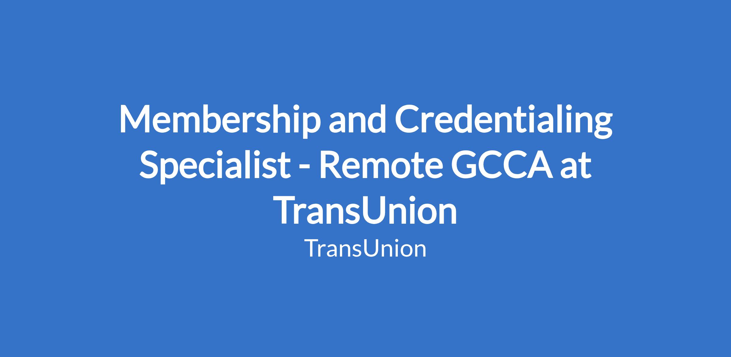 Membership and Credentialing Specialist - Remote GCCA at TransUnion