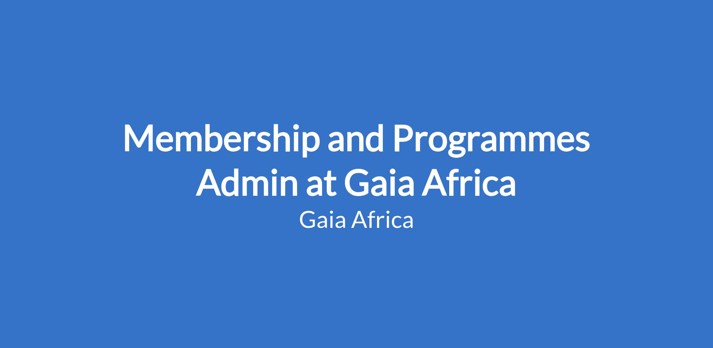Membership and Programmes Admin at Gaia Africa