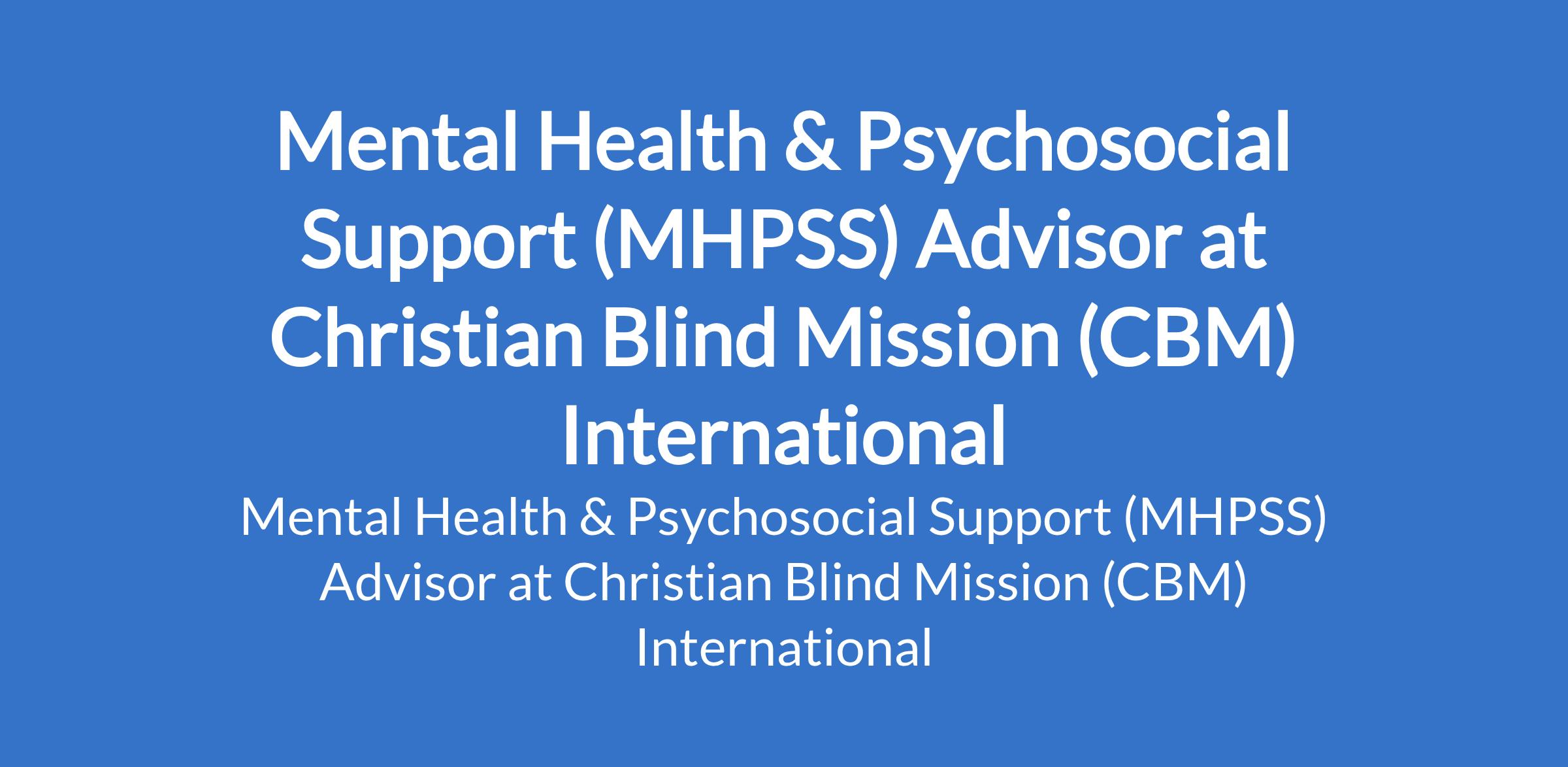 Christian Blind Mission (CBM) International is recruiting to fill the position of: Mental Health & Psychosocial Support (MHPSS) Advisor. Interested candidates should possess an Advanced Degree in a relevant field (e.g., Mental health, Psychiatry, Psychology, Psychosocial Disability) with experience working in low and middle income countries, ideally in humanitarian contexts.