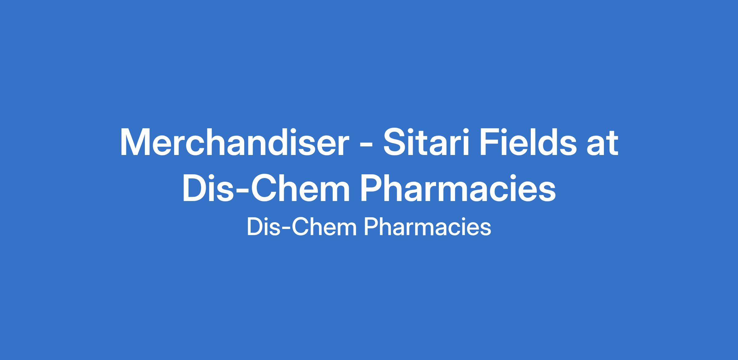 Dis-Chem Pharmacies requires a Merchandiser for their Sitari Fields store. You will ensure that basic Dis-Chem merchandising standards are properly executed and maintained. Your responsibilities will also lie in providing excellent customer service.