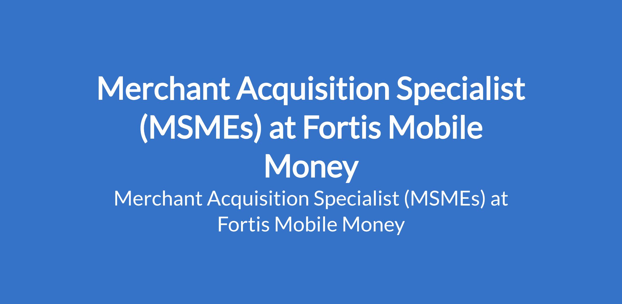 Fortis Mobile Money is recruiting to fill the position of: Merchant Acquisition Specialist (MSMEs). The position is located in Abuja (FCT). Interested candidates should possess relevant qualifications with experience in sales, business development, merchant acquisition, or fintech.