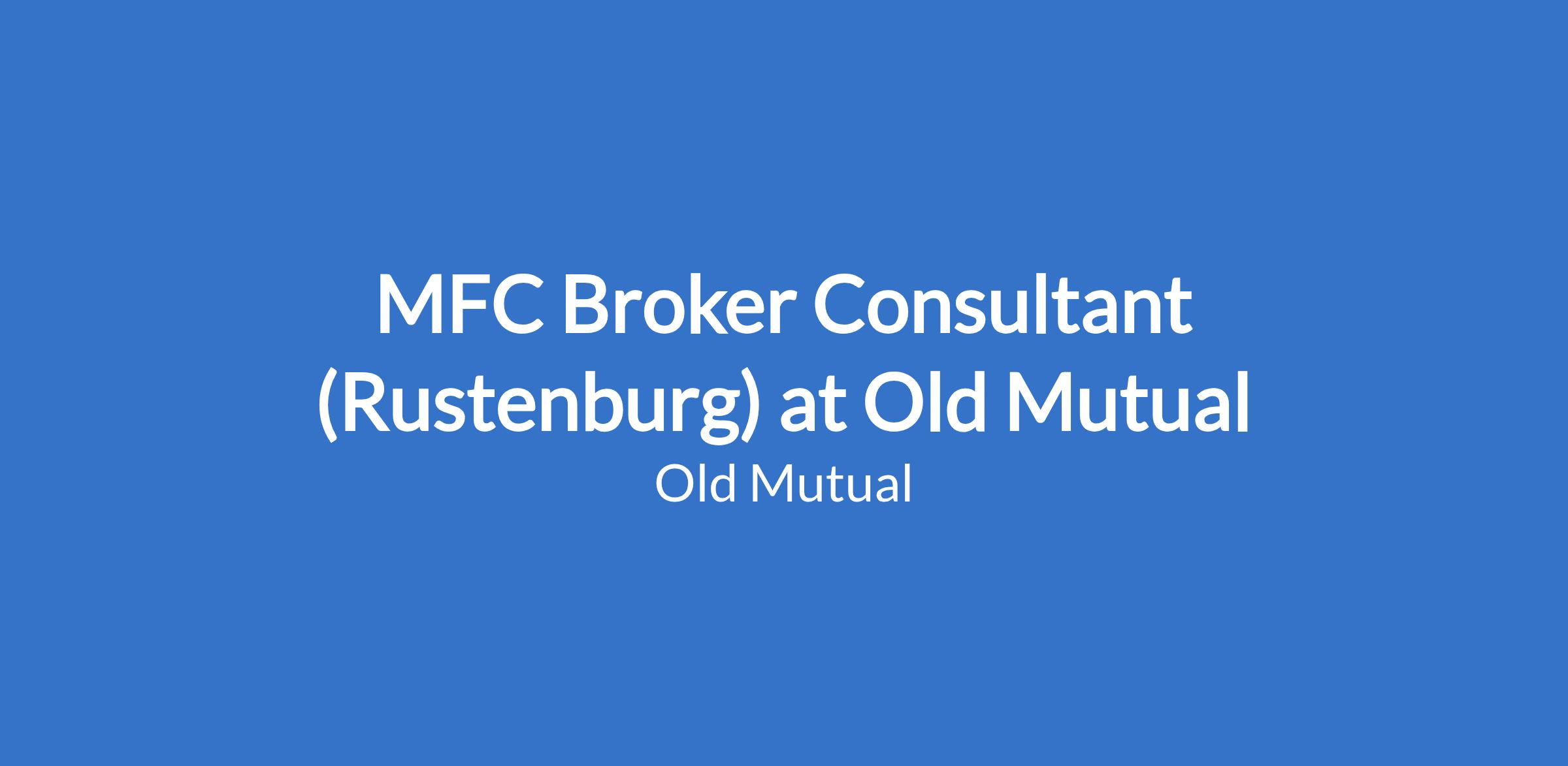 MFC Broker Consultant (Rustenburg) at Old Mutual