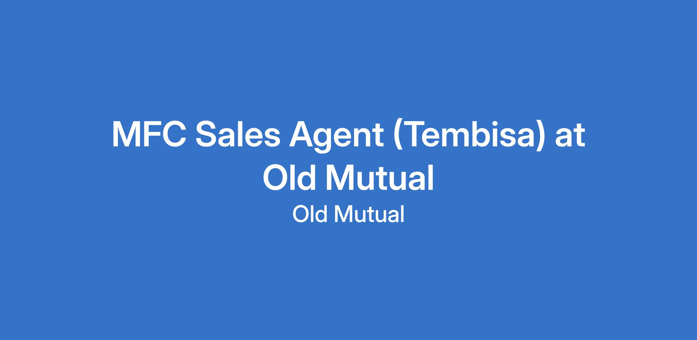 Sales agents are responsible for building and maintaining their own client base, marketing and selling the Old Mutual product and contributing to the financial wellbeing of the community.