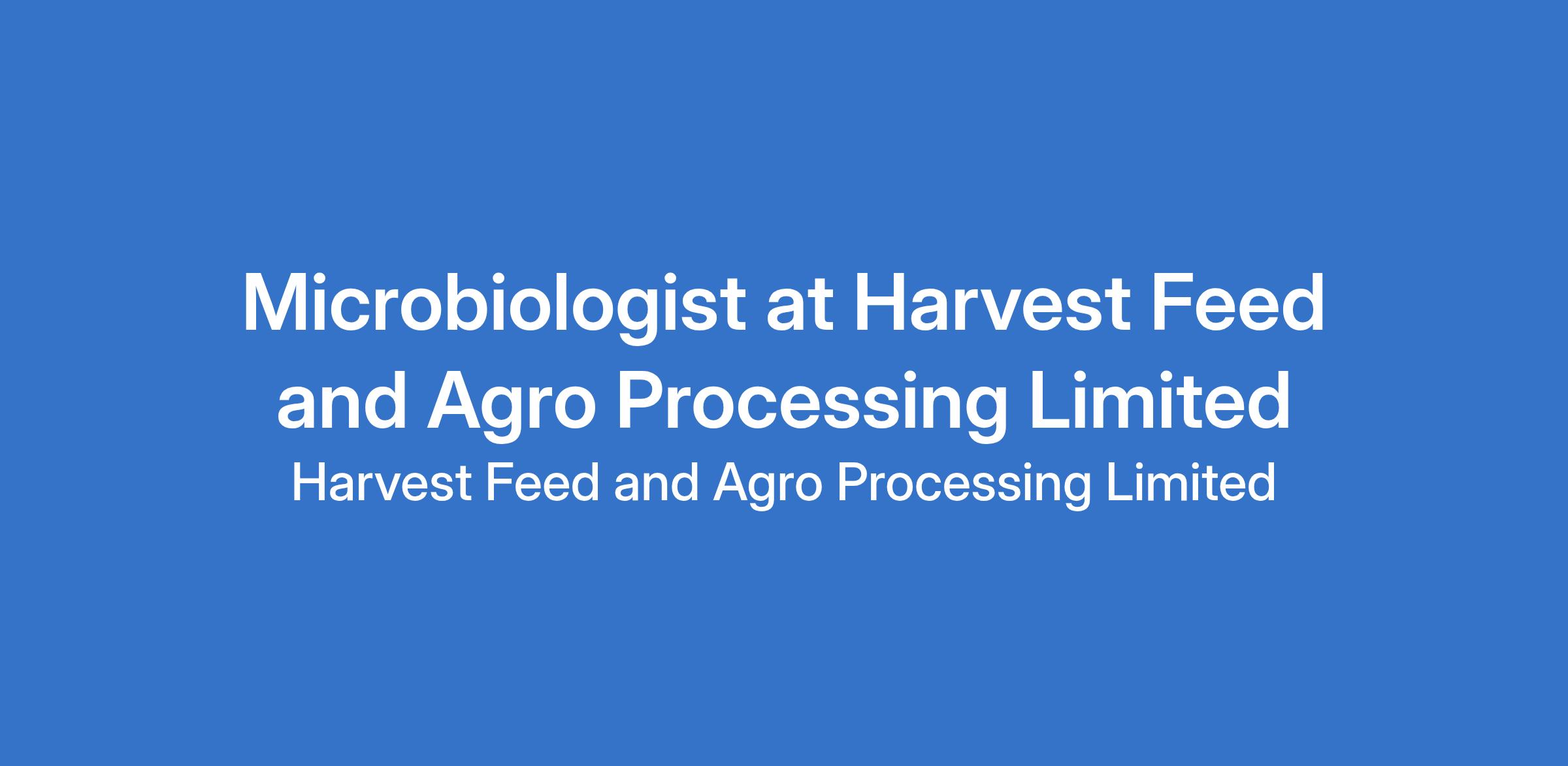Harvest Feeds and Agro Processing Ltd is seeking a qualified and detail-oriented Microbiologist to support quality control and food/feed safety within our agro-processing facility. The ideal candidate will be responsible for microbiological analysis, hygiene monitoring, and ensuring products meet regulatory and safety standards.