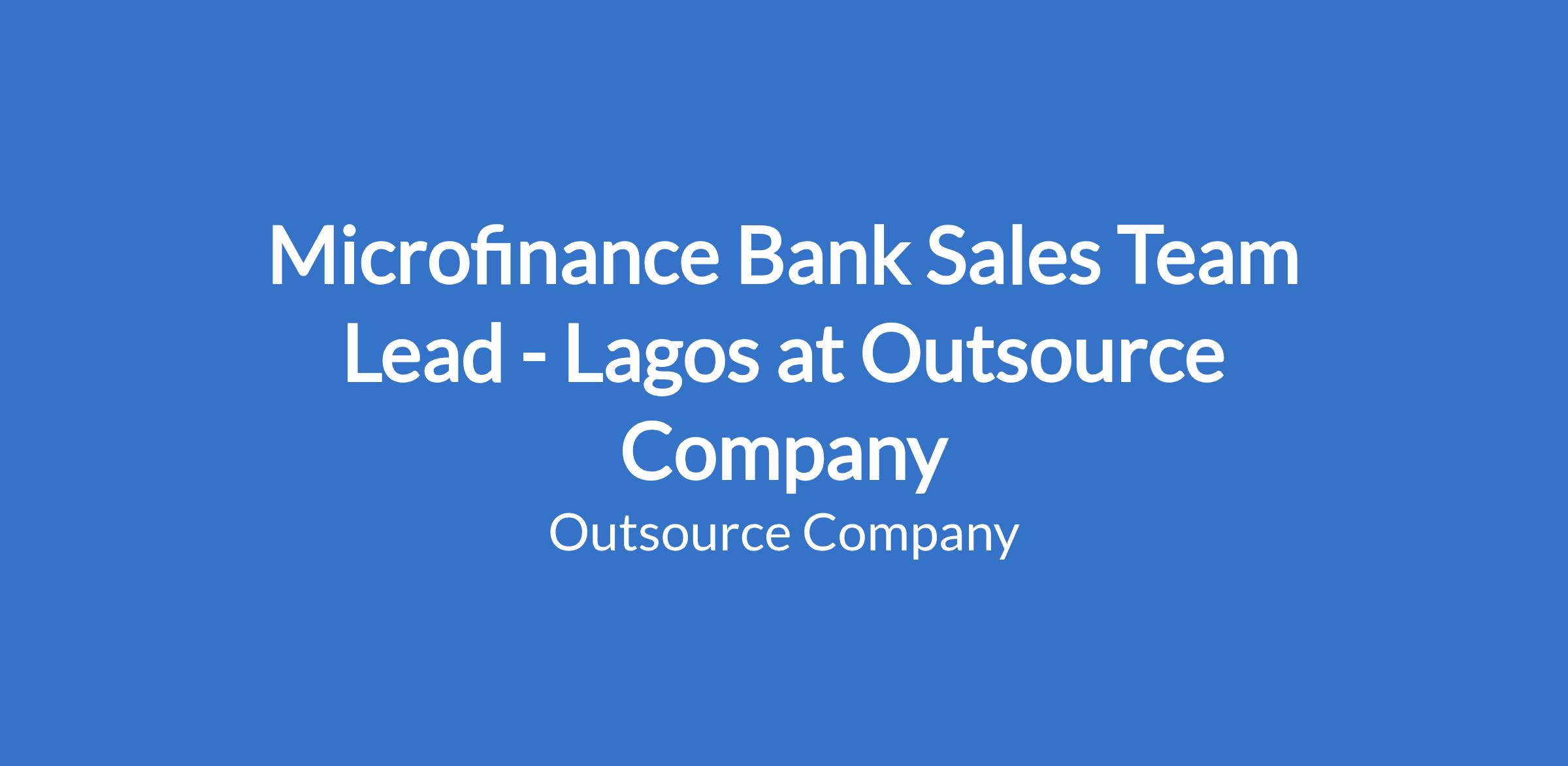 Microfinance Bank Sales Team Lead - Lagos at Outsource Company