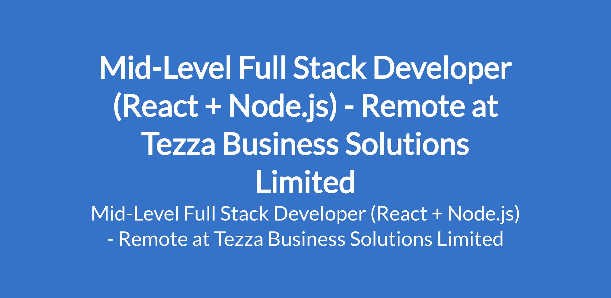 Tezza Business Solutions Limited is recruiting to fill the position of: Mid-Level Full Stack Developer (React + Node.js). This is a Remote job. Interested candidates should possess releavnt qualifications with 35 years of professional software development experience.