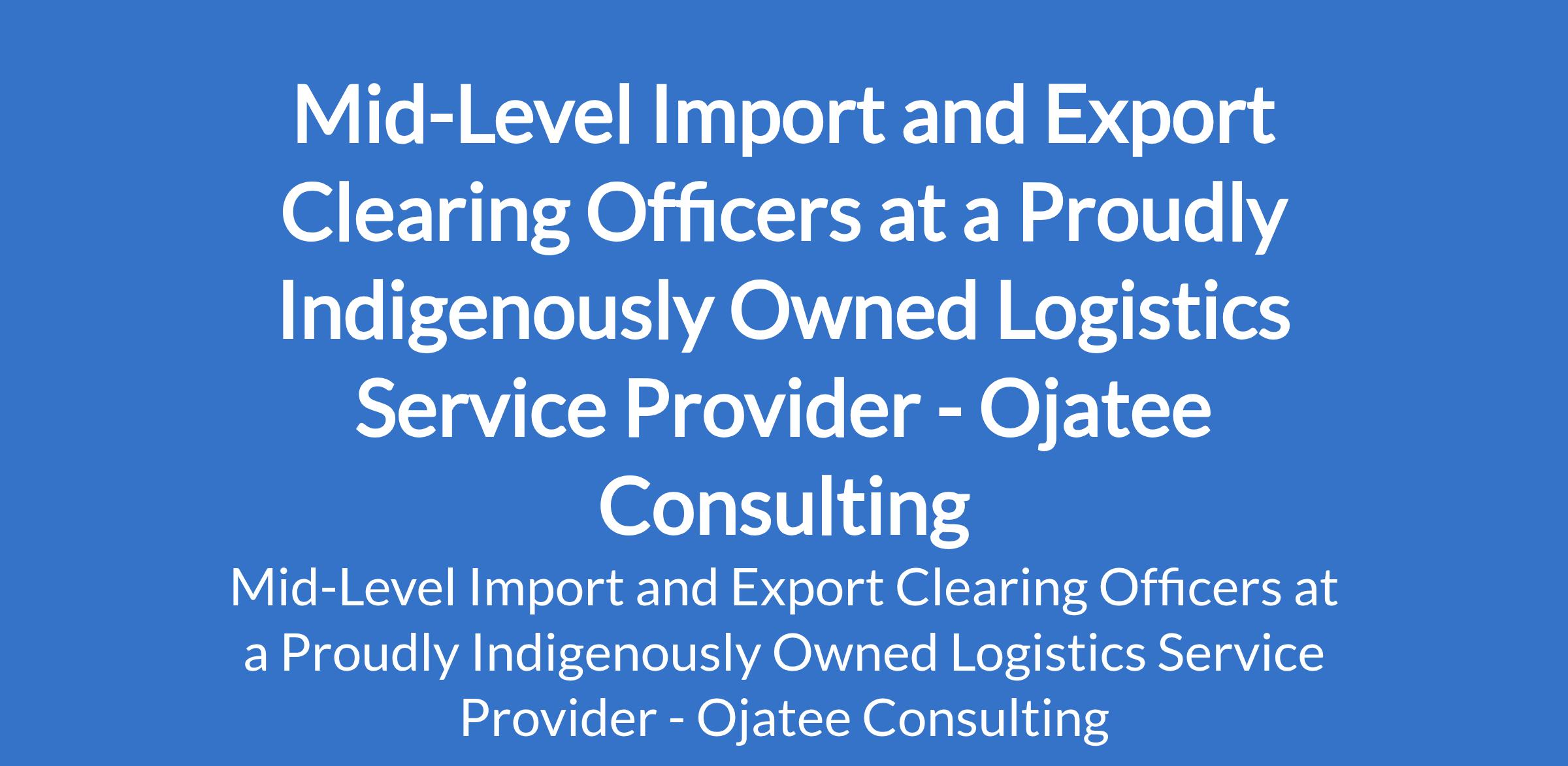 Ojatee Consulting - Our client, a proudly indigenously owned logistics service provider is recruiting to fill the position of: Mid-Level Import and Export Clearing Officer. The position is located in Ikeja, Lagos State. In this role, you will coordinate shipments, ensure full regulatory compliance, optimize logistics processes, and deliver exceptional service to clients. Interested candidates should possess a Bachelors Degree in Logistics, Supply Chain Management, Business Administration, or related fields with 46 years experience in freight forwarding or logistics operations
