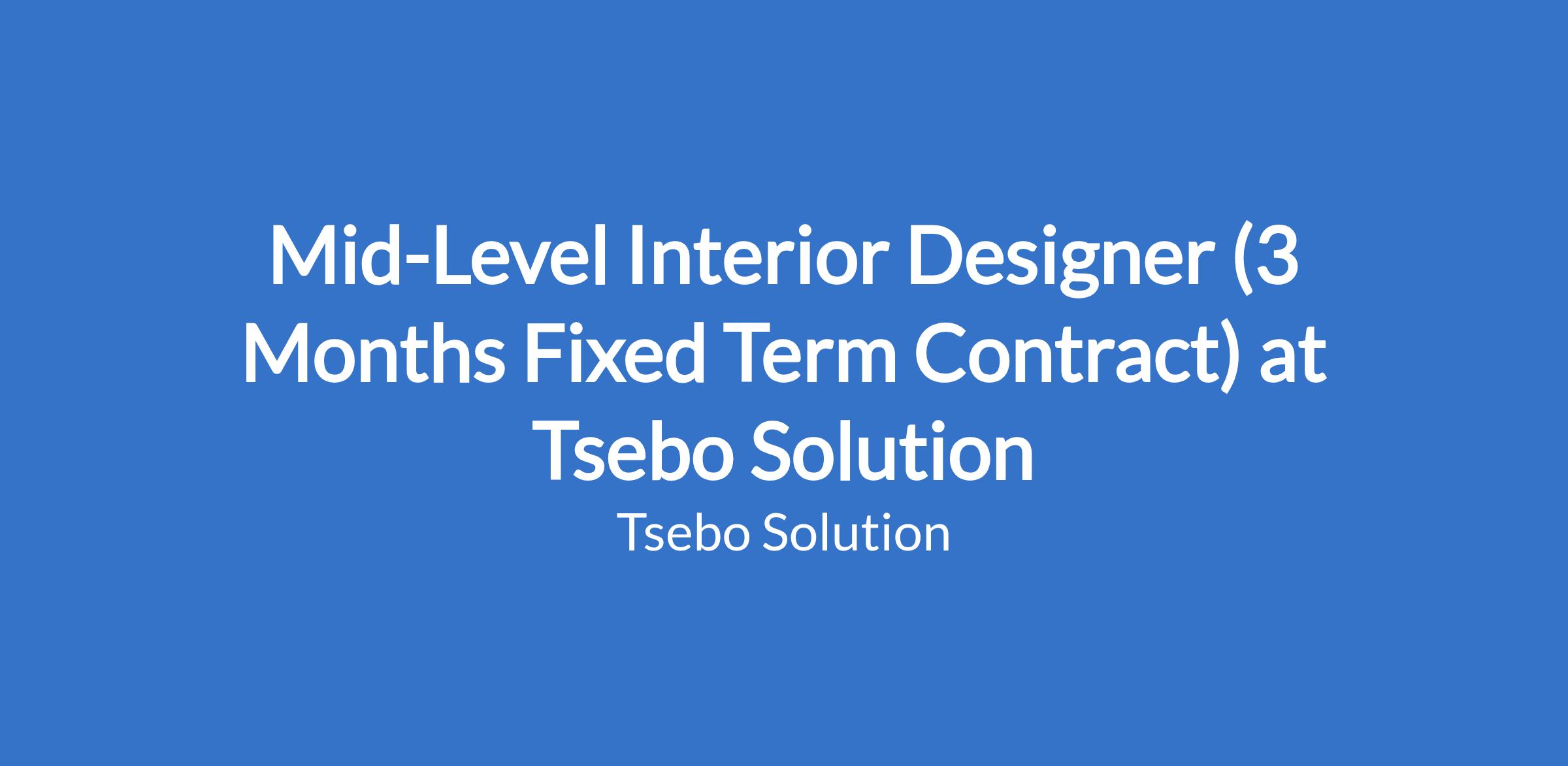 Mid-Level Interior Designer (3 Months Fixed Term Contract) at Tsebo Solution