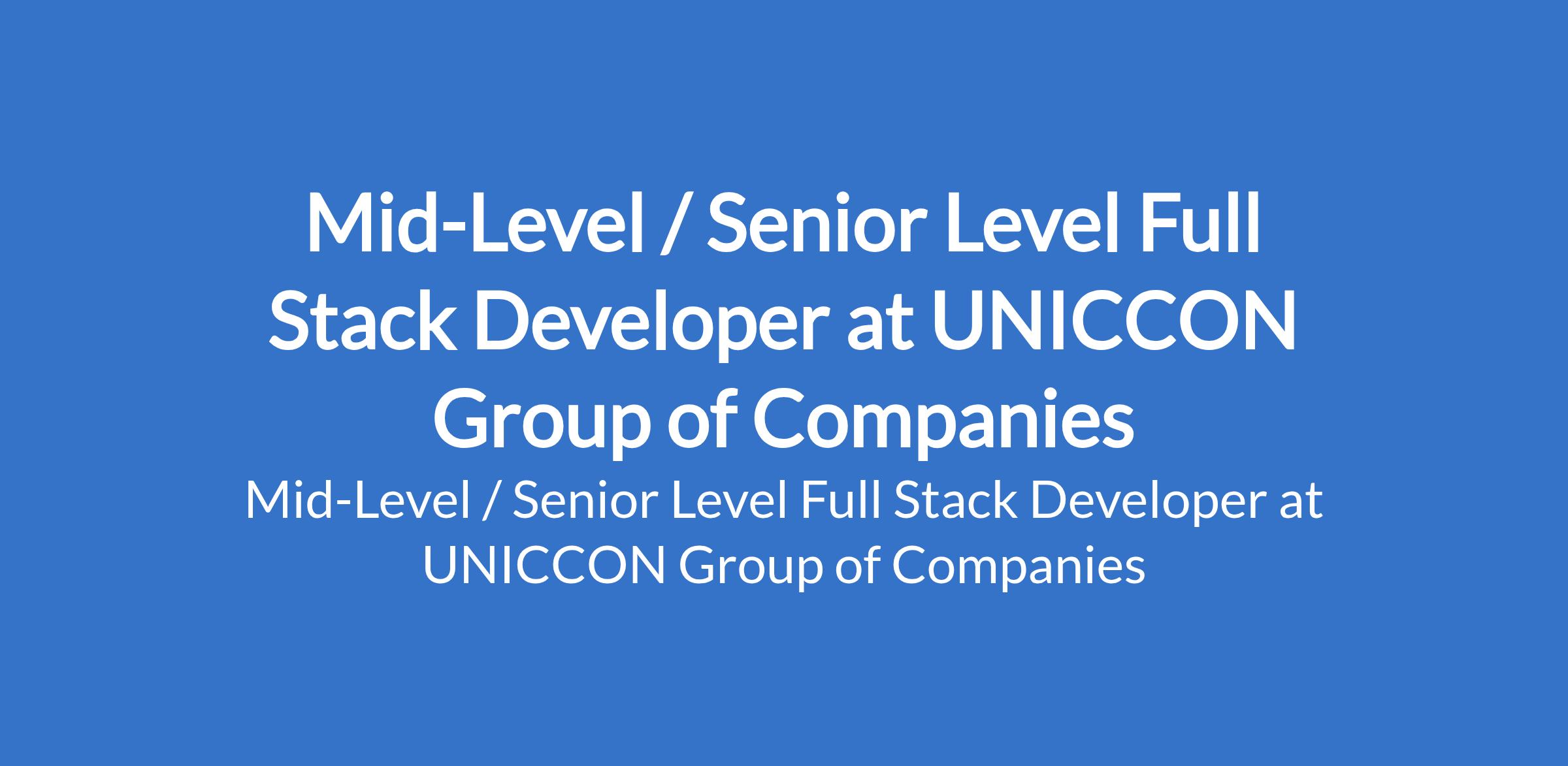 UNICCON Group of Companies is recruiting to fill the position of: Mid-Level / Senior Level Full Stack Developer. The position is located in Abuja (FCT). Interested candidates should possess a relevant qualification with 36 years of professional software development experience.