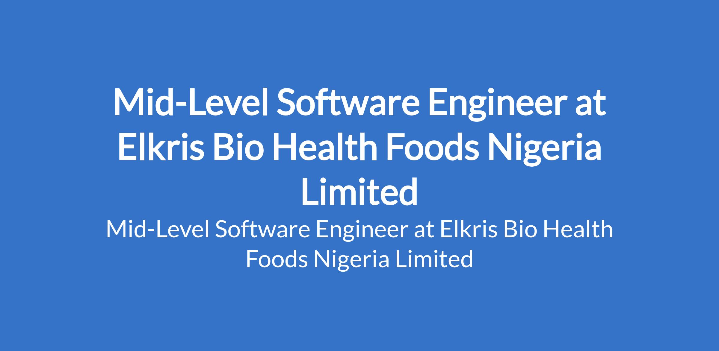 Elkris Bio Health Foods Nigeria Limited is recruiting to fill the position of: Mid-Level Software Engineer. The position is located in Abuja (FCT). Salary: N350,000 - N500,000 per month. Interested candidates should possess a Bachelors Degree in Computer Science, Software Engineering, Information Technology, or related fields with 35 years experience in software development and IT operations.
