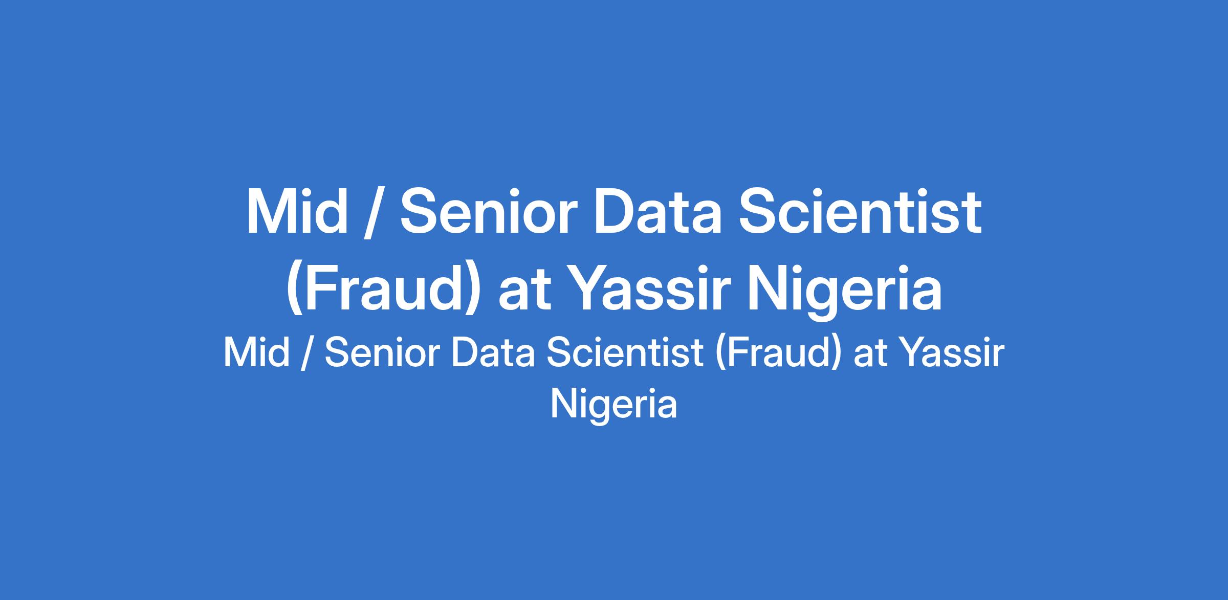 Yassir Nigeria is recruiting to fill the position of: Mid / Senior Data Scientist (Fraud). The position is located in Lagos State. As a Data Scientist, you will play a crucial role in analyzing and modelling data to optimize our Machine Learning (ML) systems. Interested candidates should possess relevant qualifications.