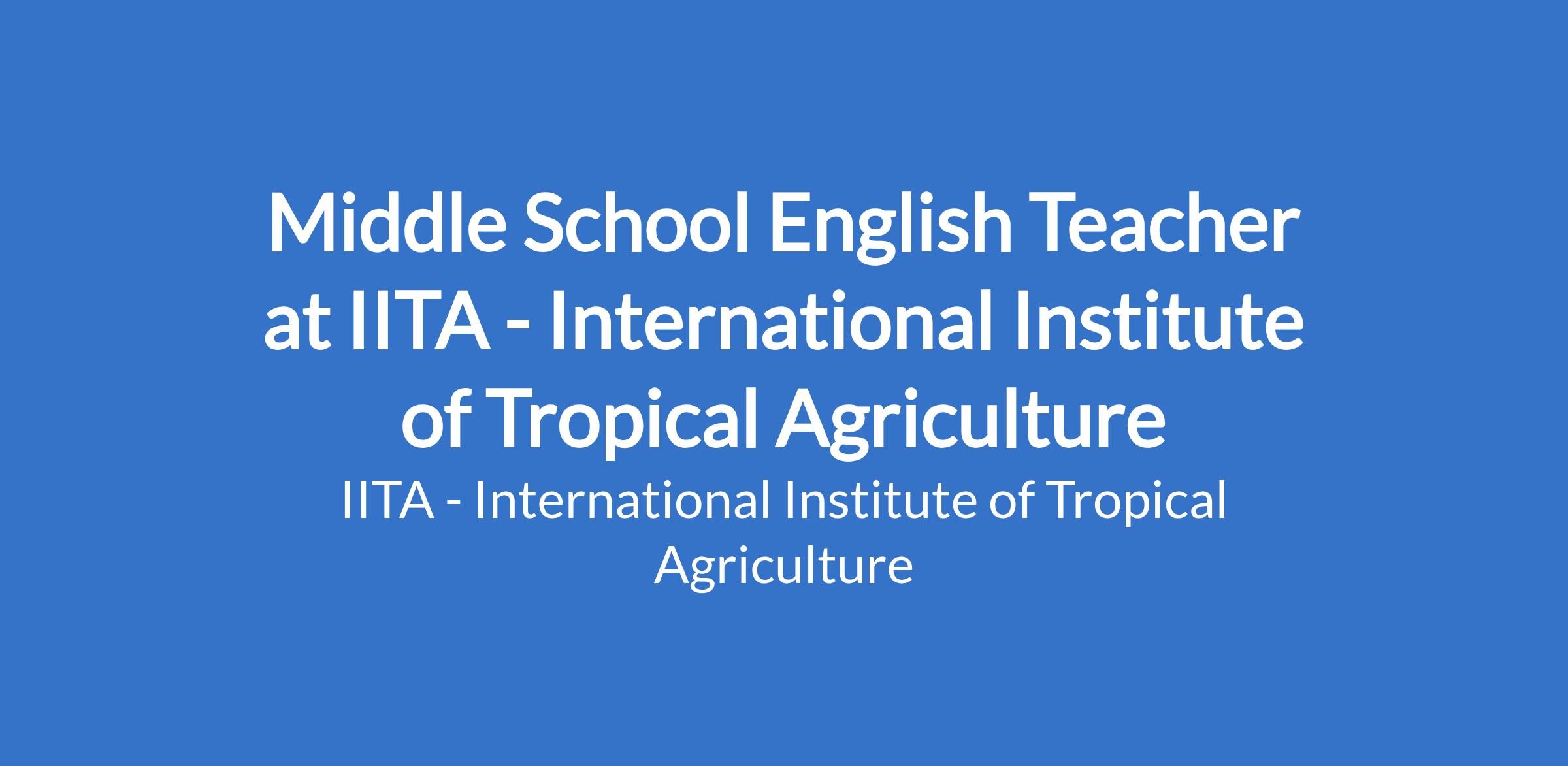 The International Institute of Tropical Agriculture (IITA) invites applications for the internationally recruited position of Middle School English Teacher.