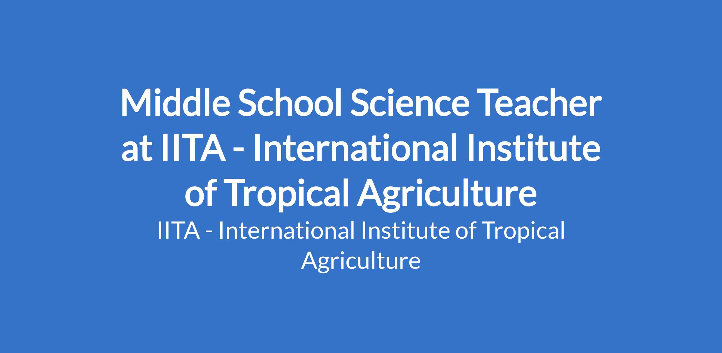 The International Institute of Tropical Agriculture (IITA) invites applications for the internationally recruited position of Middle School Science Teacher.