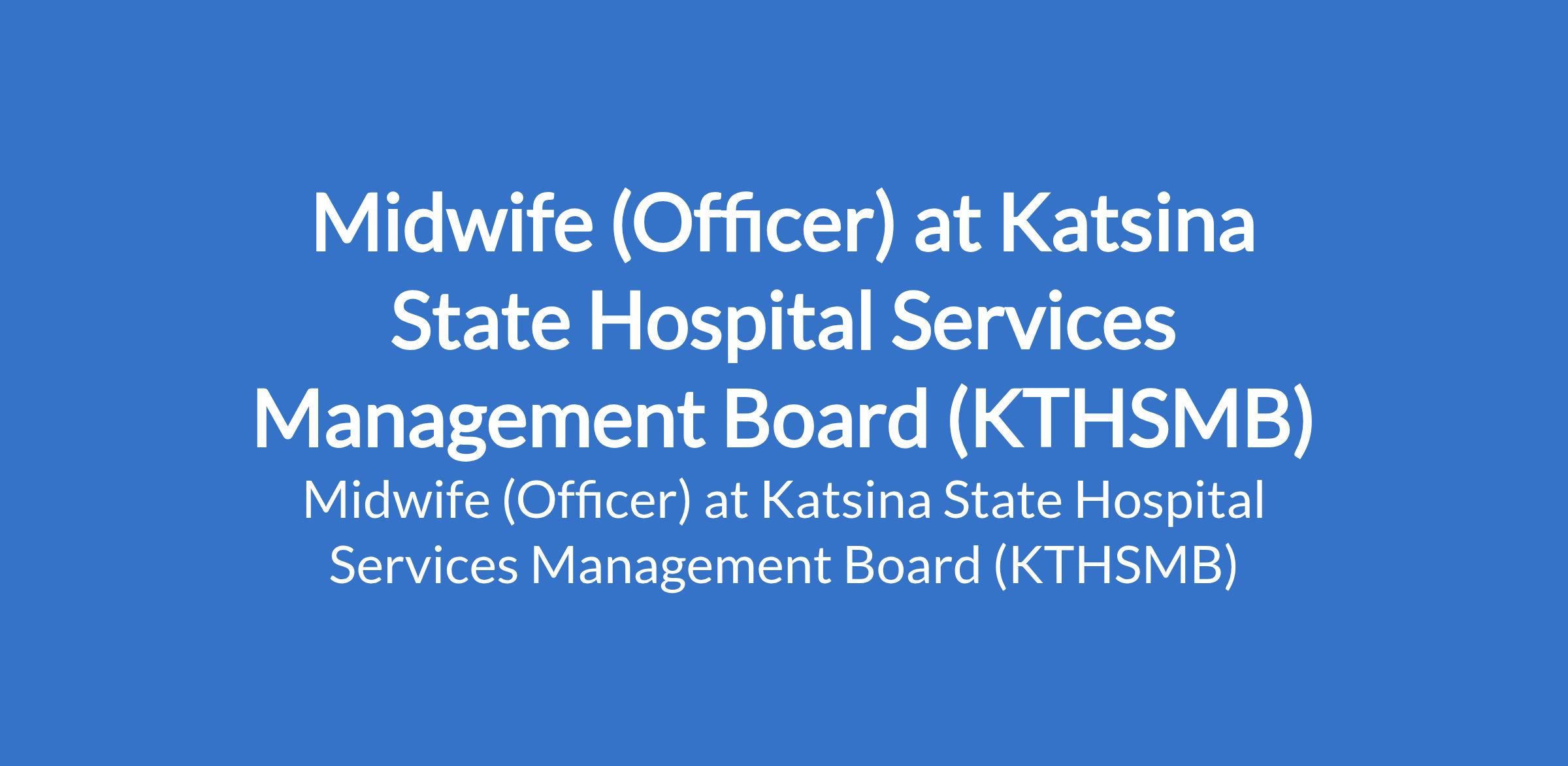 Katsina State Hospital Services Management Board (KTHSMB) invites applications from suitable candidates to fill the position of: Midwife (Officer). Interested candidates should be a registered Midwife (RM) qualification and a Valid practicing license.
