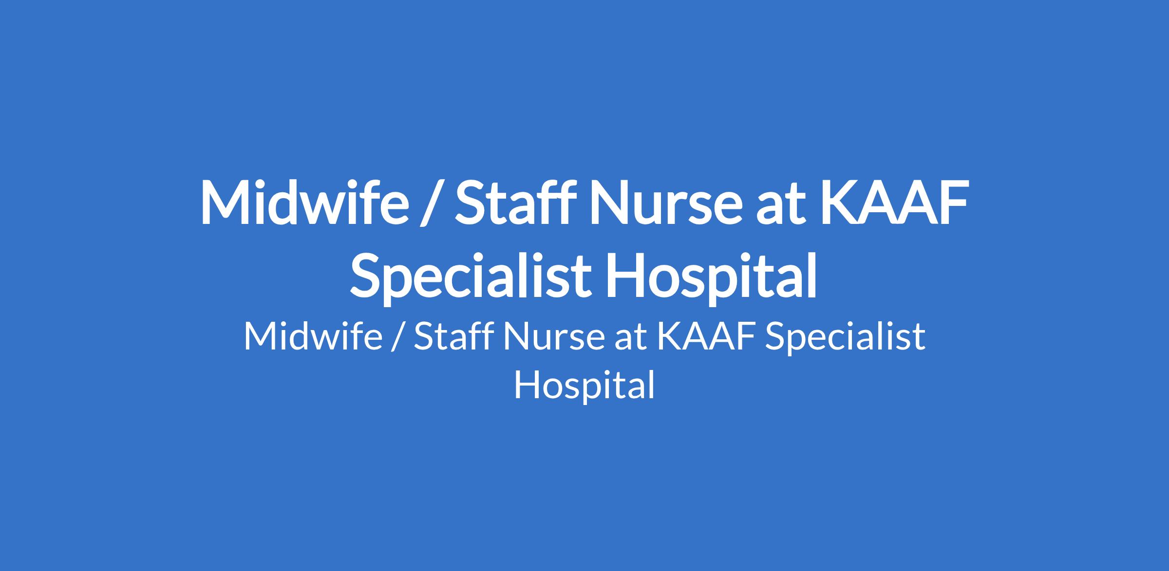 KAAF Specialist Hospital is recruiting to fill the position of: Midwife / Staff Nurse. The position is located in Yaba, Lagos State. Salary: N180,000 - N200,000 / month. Interested candidates should be Registered Nurses (RN) with valid licenses; a registered Midwife (RM) is an added advantage with a minimum of 2 years of clinical experience in a hospital with a strong background in midwifery.