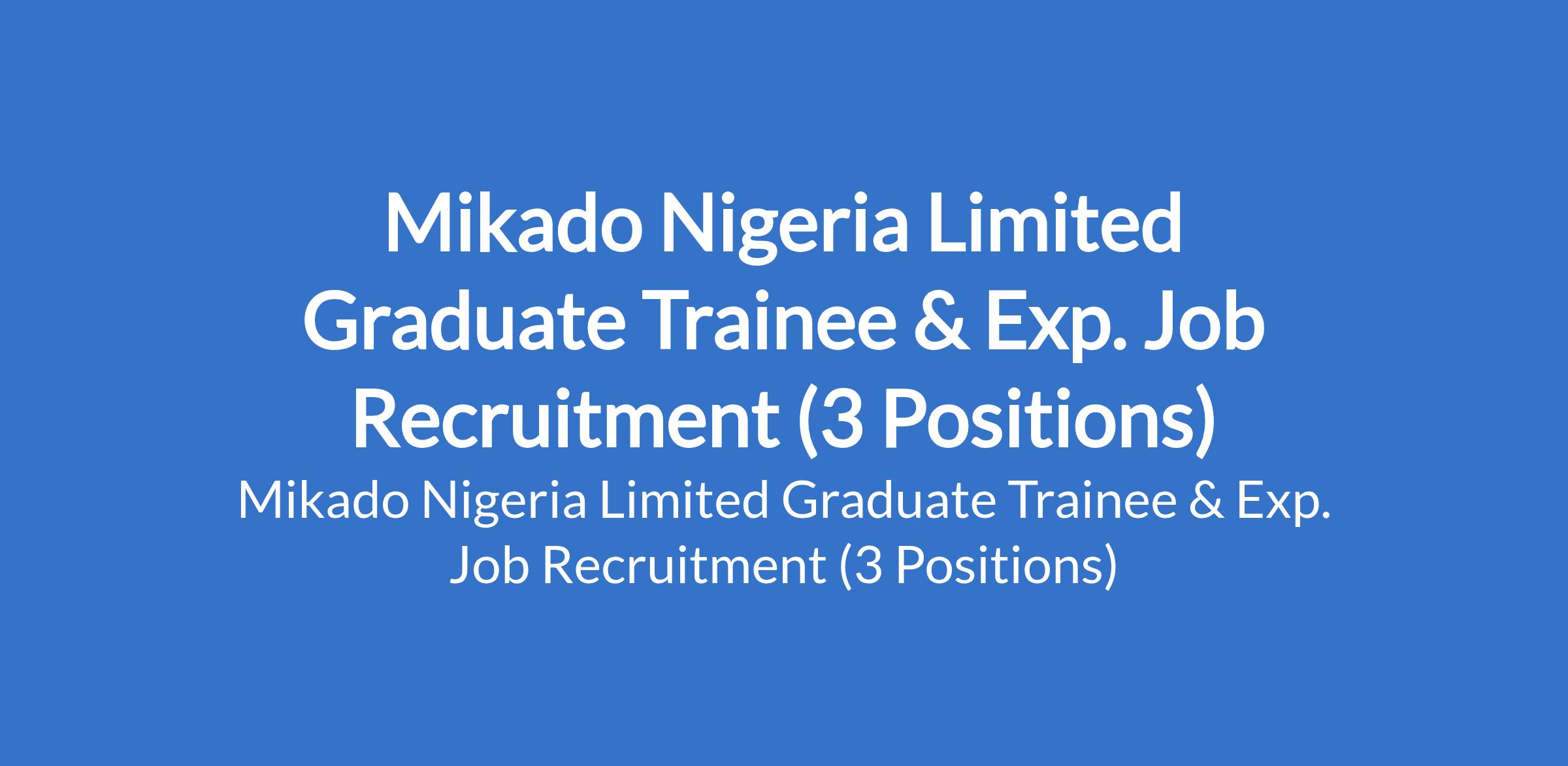 Mikado Nigeria Limited Graduate Trainee & Exp. Job Recruitment (3 Positions)