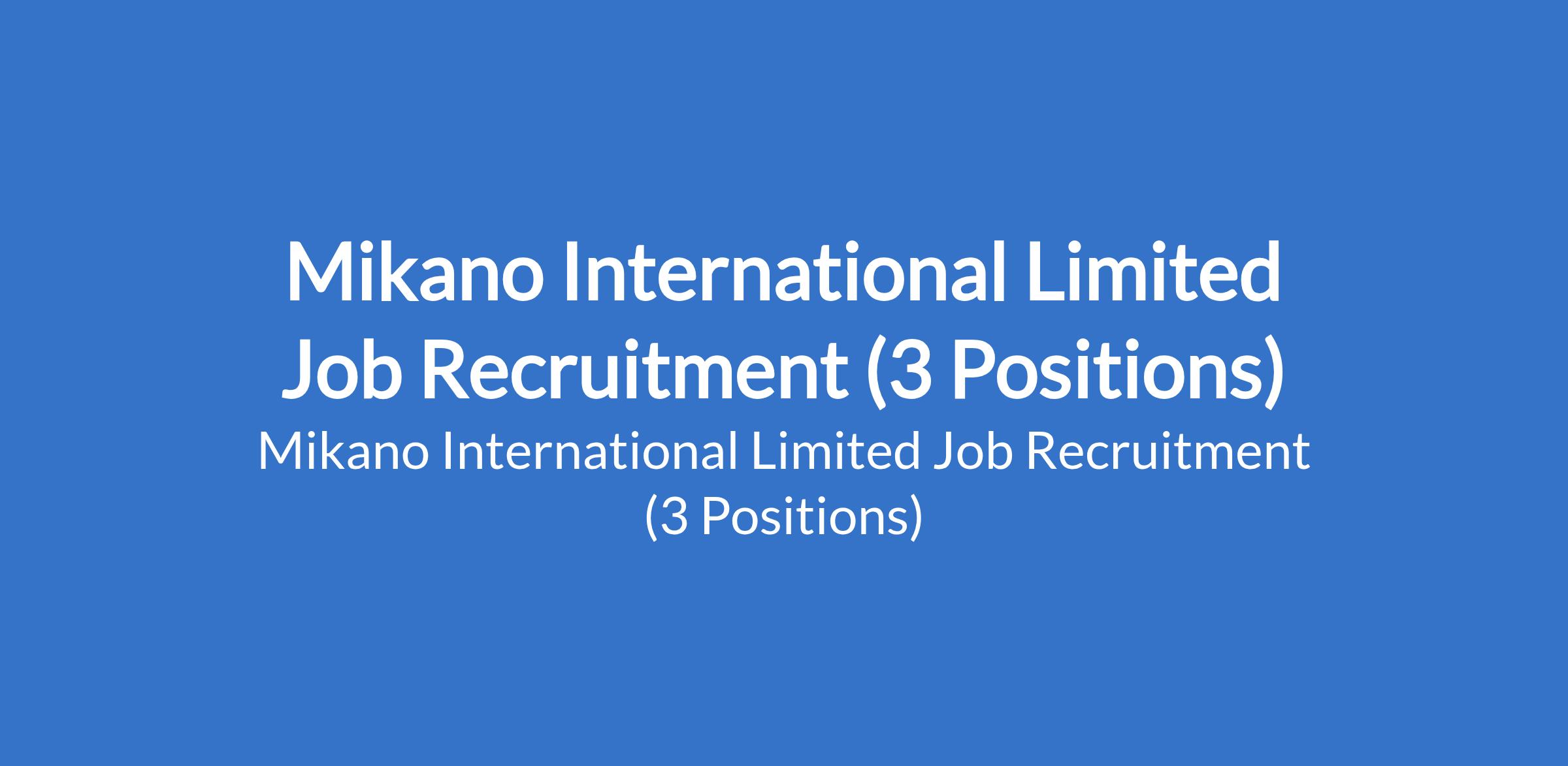 Mikano International Limited is currently seeking applications from suitably qualified candidates to fill the following positions in Lagos State: HIAB Driver; Generator Operator; and Welder.