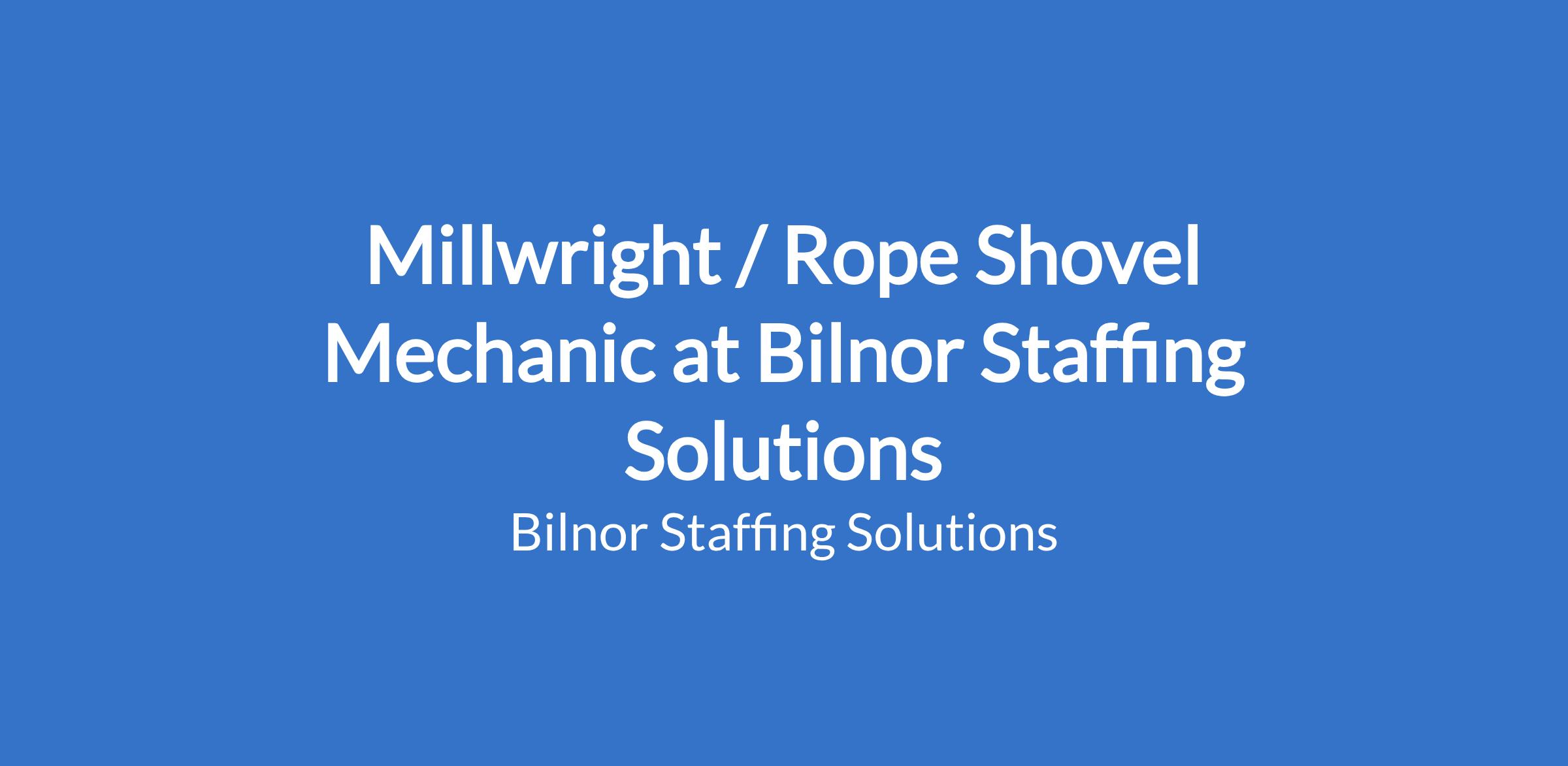 Bilnor Staffing Solution's International client in the Mining Sector is seeking a highly experienced Millwright / Rope Shovel Mechanic with an opencast background.