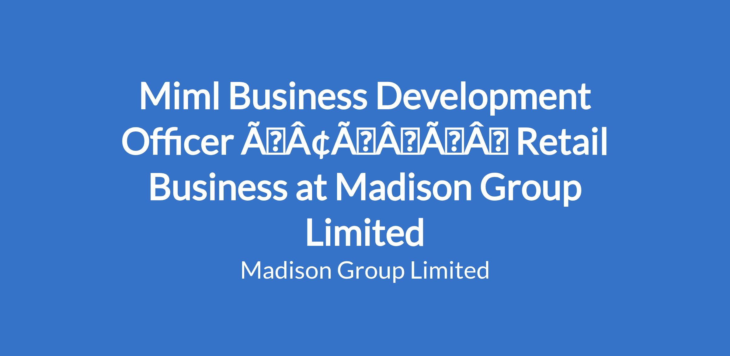 Miml Business Development Officer âÃÂàRetail Business at Madison Group Limited