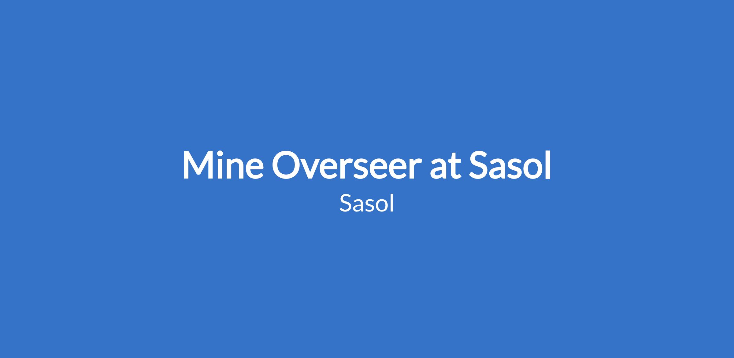 Mine Overseer at Sasol