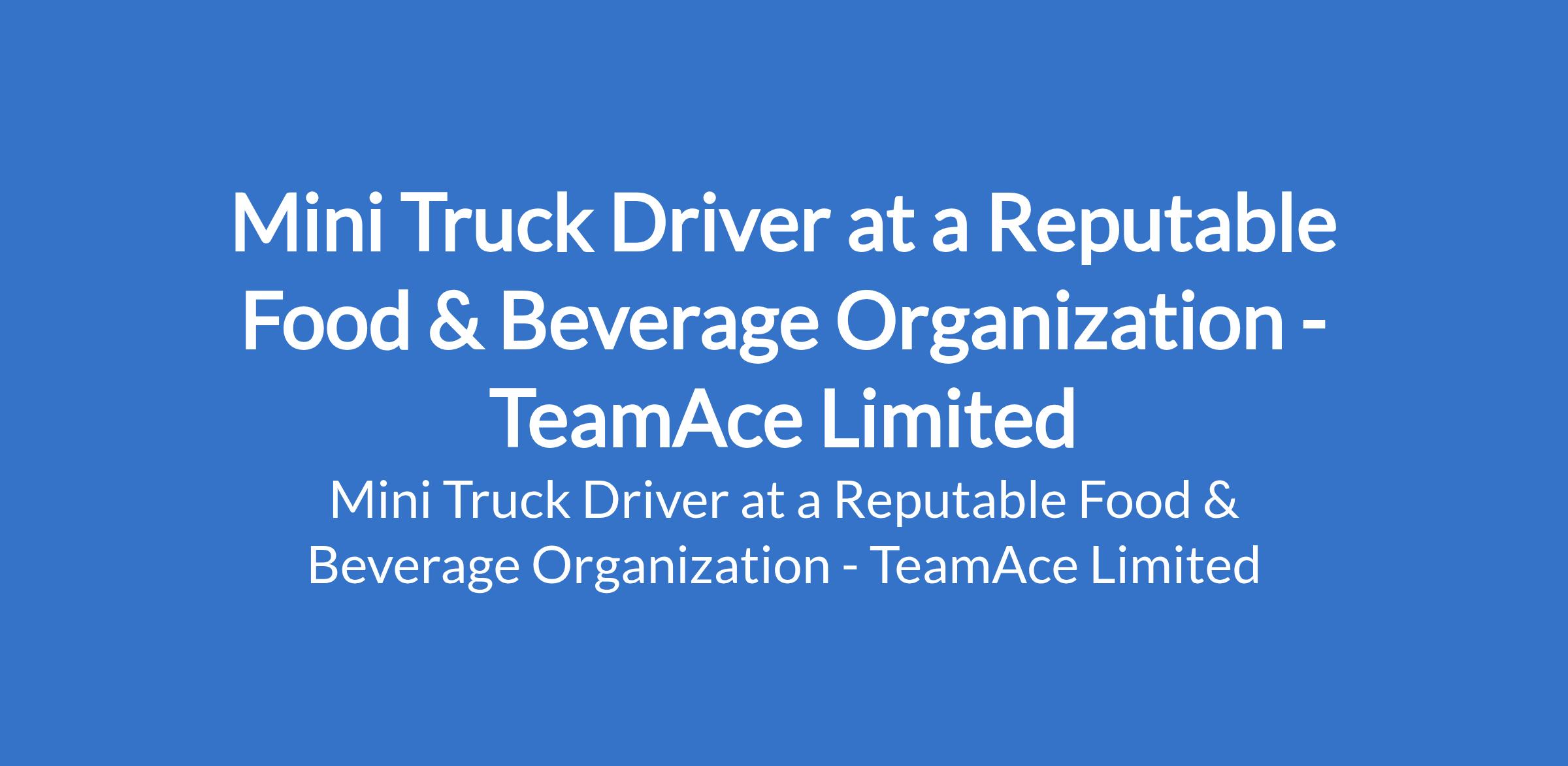 TeamAce Limited - Our client, a reputable Food & Beverage Organization is recruiting to fill the position of: Mini Truck Driver. The position is located in Apapa, Lagos State. Salary: N110,000 - N120,000 monthly. Interested candidates should possess minimum of an SSCE qualification, a valid drivers license, with a minimum of 3 years driving experience within Lagos road networks and proven experience operating mini trucks.