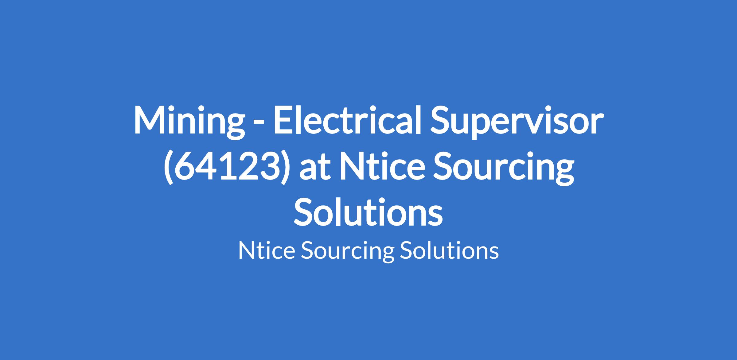 A Mining house based in the Limpopo region is looking for an experienced Electrical Supervisor