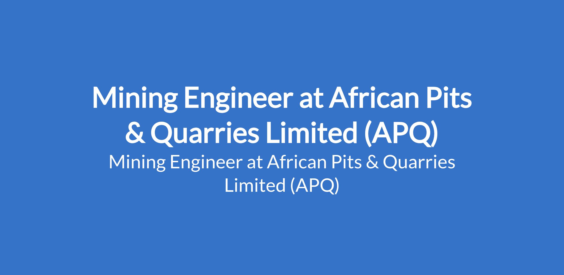 Mining Engineer at African Pits & Quarries Limited (APQ)