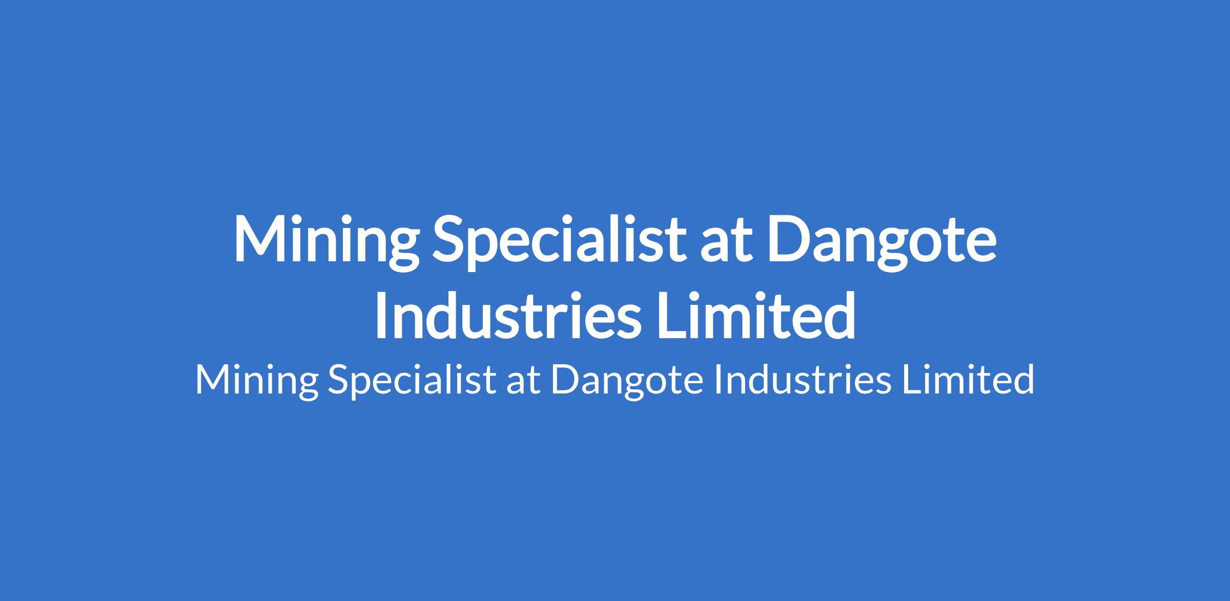Dangote Industries Limited is recruiting to fill the position of: Mining Specialist. The position is located in Ibese Plant, Ogun State. Interested candidates should possess a Bachelor's Degree in Mining Engineering or a related field with 9 - 12 years of experience in mining operations or engineering.