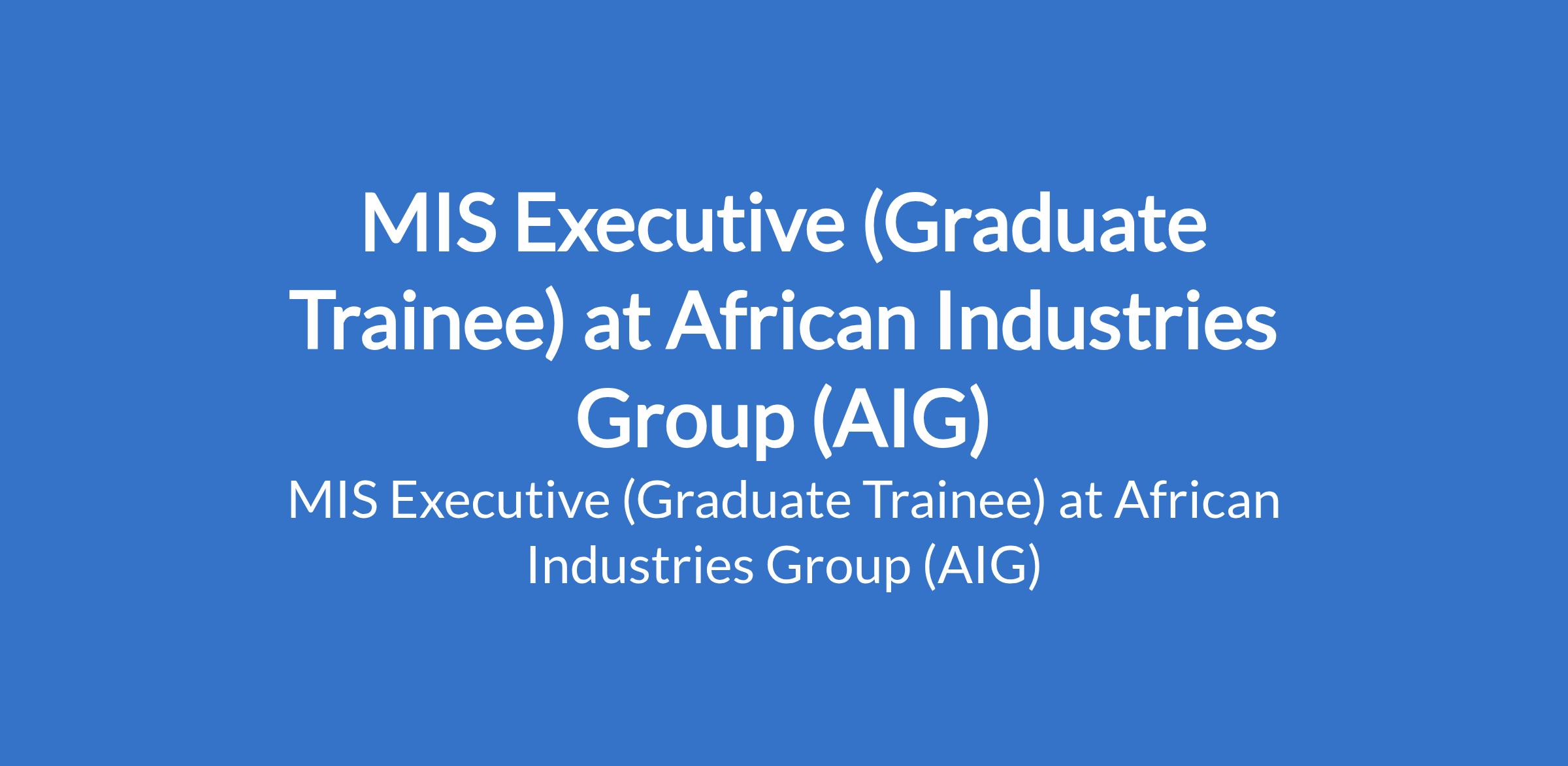 African Industries Group (AIG) is recruiting to fill the position of: MIS Executive (Graduate Trainee). The position is located in Ikoyi, Lagos State. Salary: N150,000 Monthly. Interested candidates should possess a Bachelors Degree in Business Administration, Computer Science, Statistics, Economics, or a related field with basic knowledge of Microsoft Office, particularly Excel.