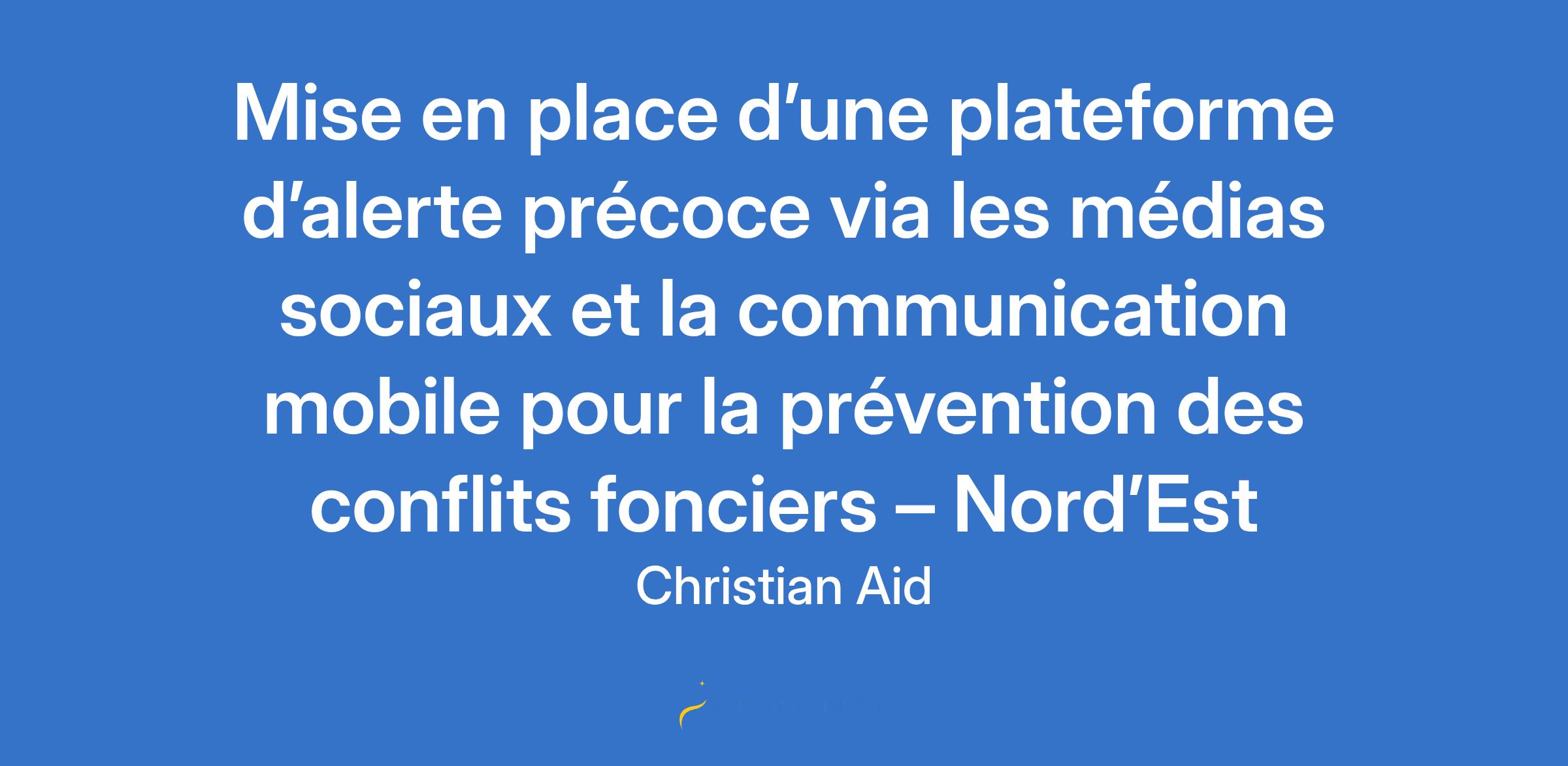 L’objectif général est de mettre en place une plateforme d’alerte précoce numérique, s’appuyant sur les médias sociaux et les outils de communication mobile, pour renforcer les mécanismes communautaires de prévention et réponse rapide aux signes avant-coureurs de conflits fonciers dans le Nord’Est et le Sud d’Haïti.