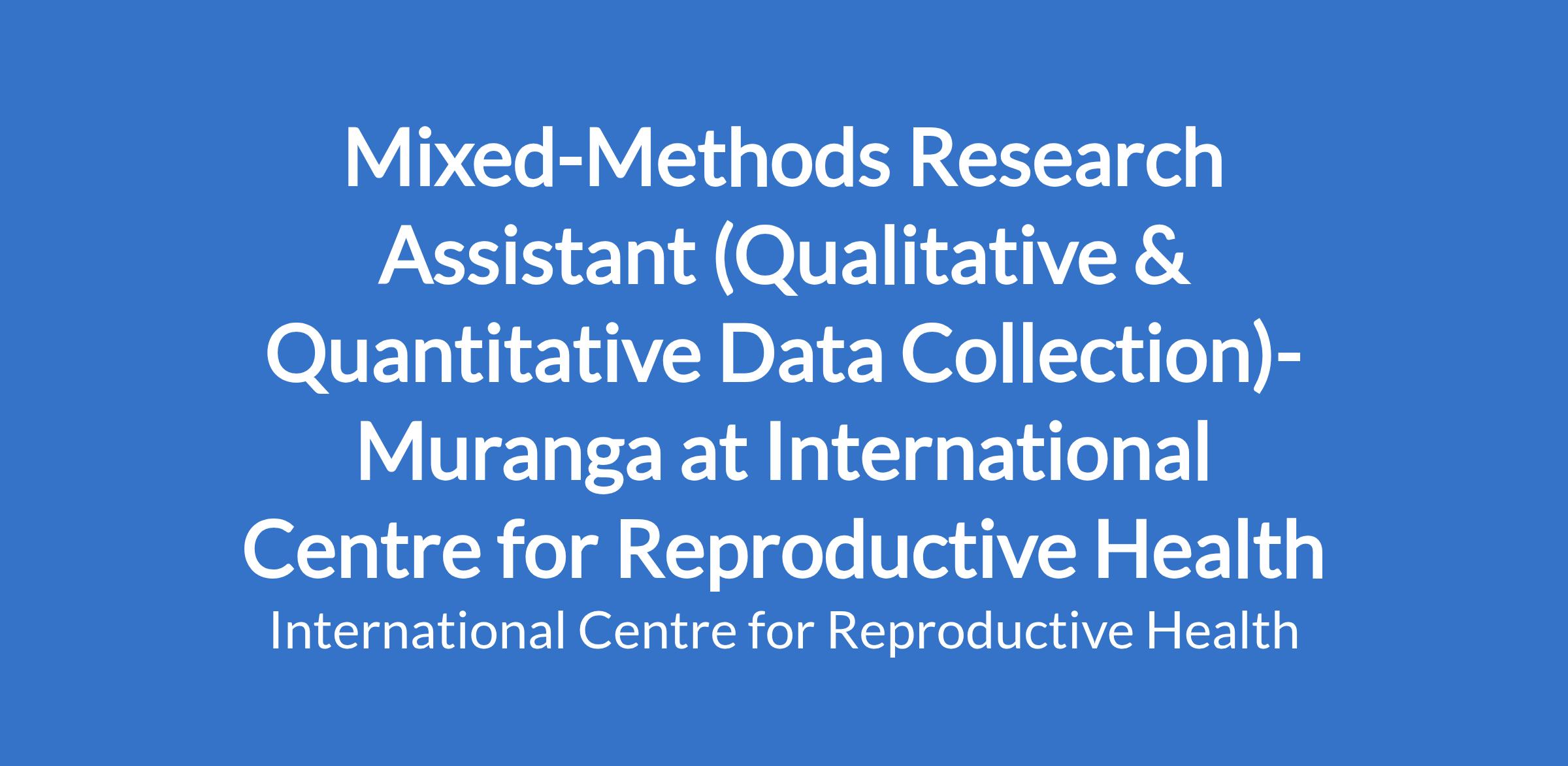 Mixed-Methods Research Assistant (Qualitative & Quantitative Data Collection)- Muranga at International Centre for Reproductive Health