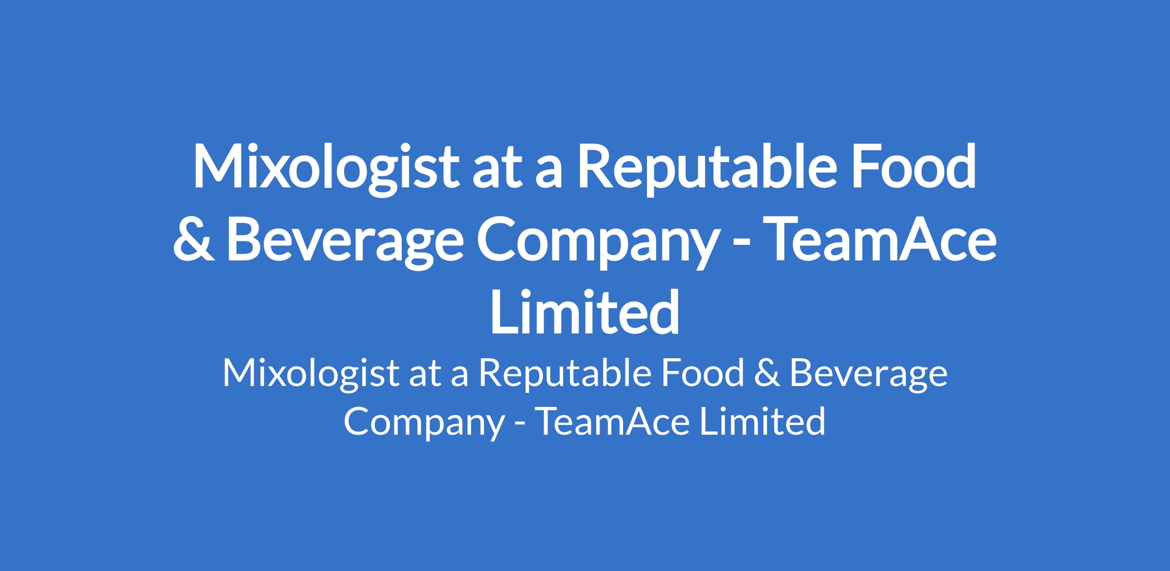 TeamAce Limited - Our client, a reputable organization in the Food & Beverage sector is recruiting to fill the position of: Mixologist. The position is located in Lekki Phase 1, Lagos State. Salary: N150,000 - N200,000 per month. Interested candidates should possess relevant qualifications.