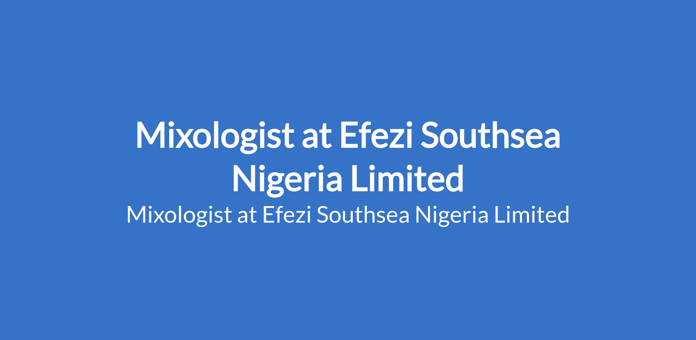 Efezi Southsea Nigeria Limited is recruiting to fill the position of: Mixologist. The position is located in Surulere, Lagos State. Salary: N100,000 / month. Interested candidates should possess relevant qualifications with experience as a bartender or mixologist.