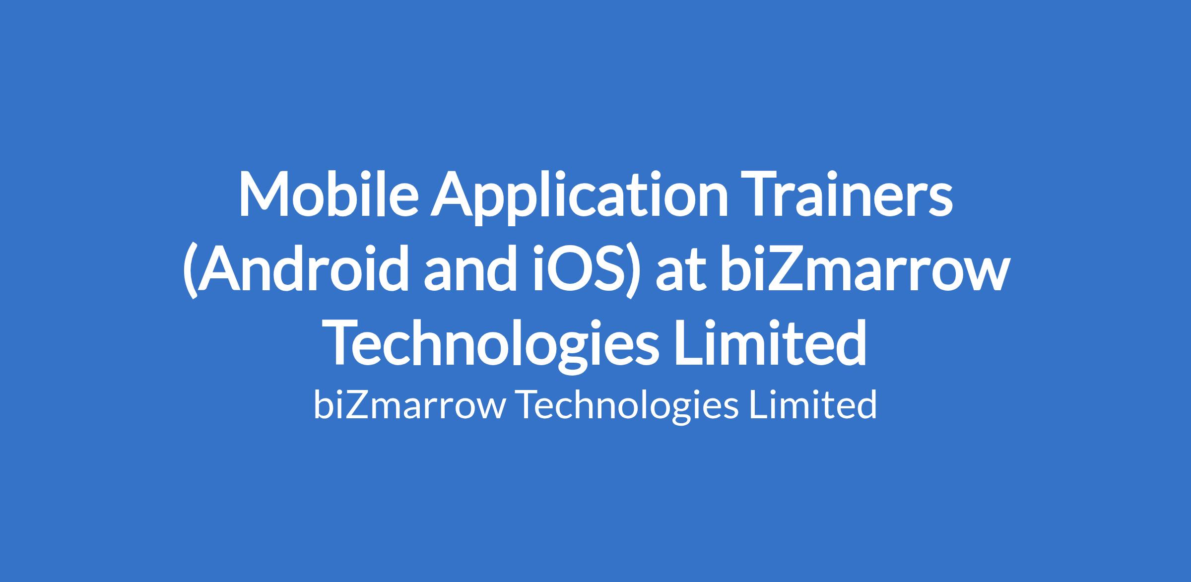Mobile Application Trainers (Android and iOS) at biZmarrow Technologies Limited