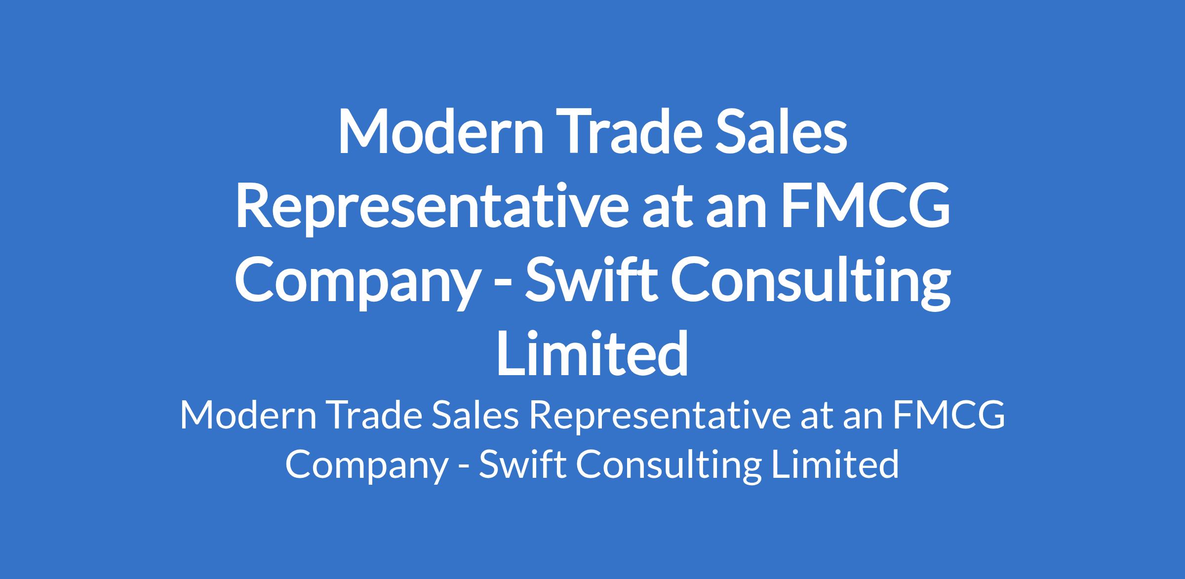 Swift Consulting Limited - Our client, in the FMCG company is recruiting to fill the position of: Modern Trade Sales Representative. The position is located in Lagos State. Interested candidates should possess an OND in Business Administration, Marketing, or related fields with 1 2 years experience in sales, preferably FMCG or retail distribution.