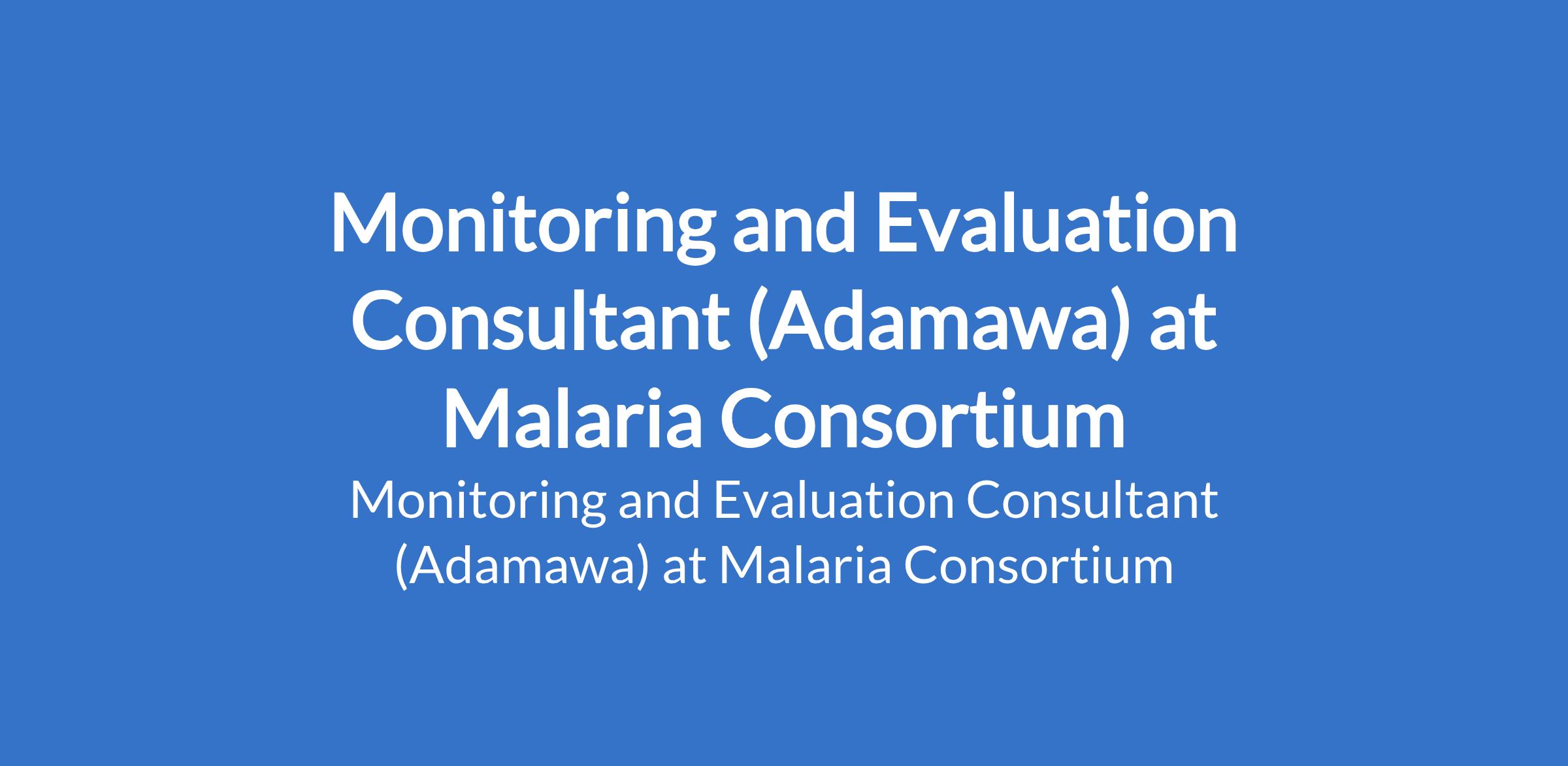 Malaria Consortium is recruiting to fill the position of: Monitoring and Evaluation Consultant. The position is located in Adamawa State. Interested candidates should possess a Degree in Public Health, Development Studies, Statistics, Data Science or a related field with a minimum of 5 years experience in M&E roles, preferably in malaria campaigns.