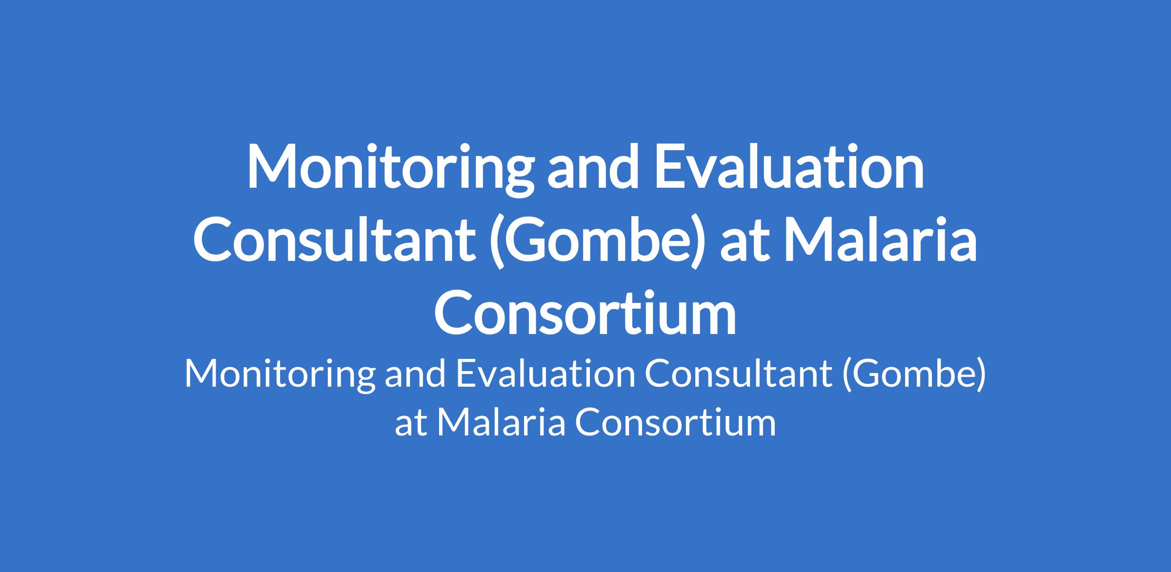 Malaria Consortium is recruiting to fill the position of: Monitoring and Evaluation Consultant. The position is located in Gombe State. Interested candidates should possess a Degree in Public Health, Development Studies, Statistics, Data Science or a related field with a minimum of 5 years experience in M&E roles, preferably in malaria campaigns.