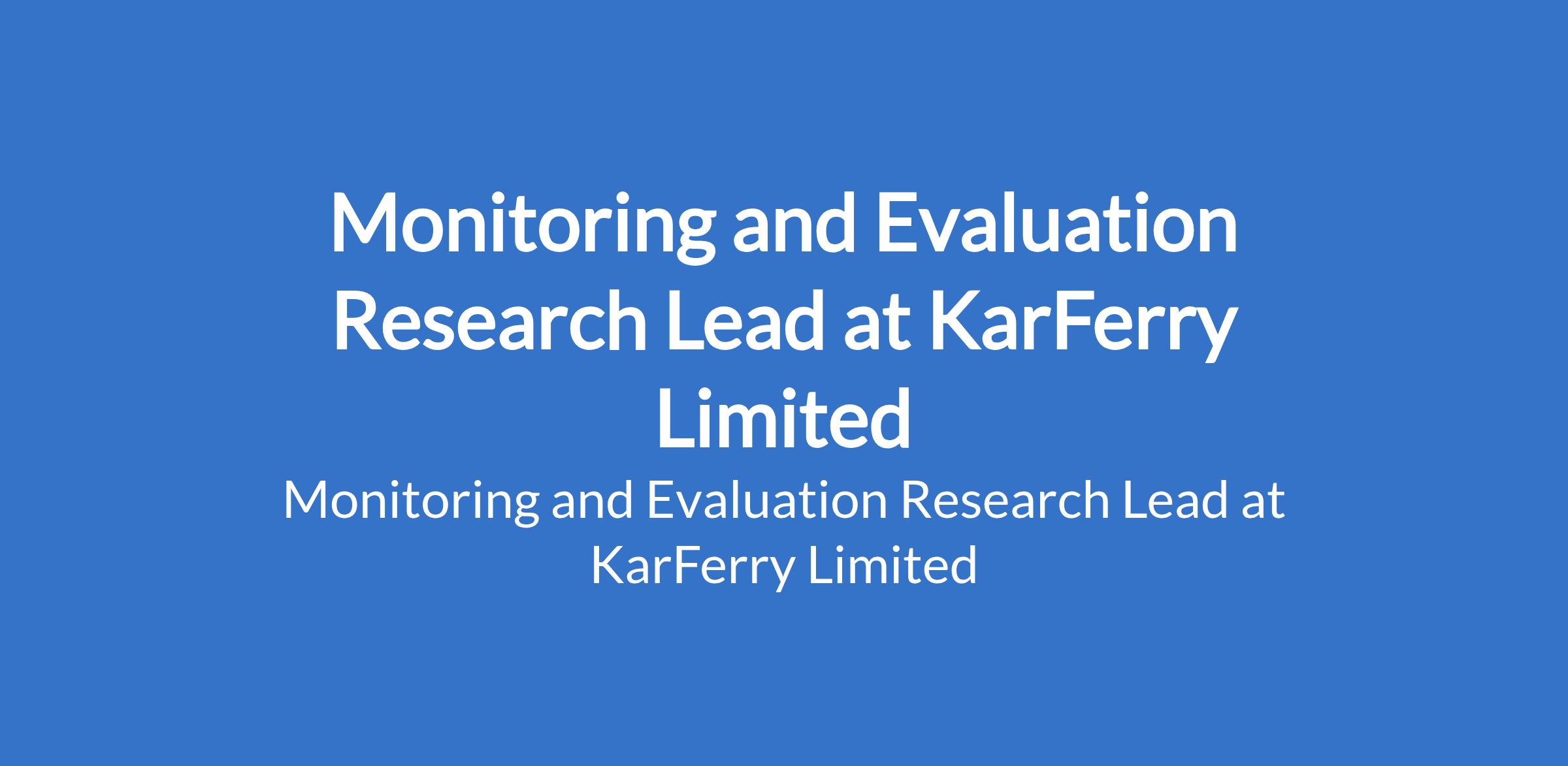 KarFerry Limited is recruiting to fill the position of: Monitoring and Evaluation Research Lead. The position is located in Abuja (FCT). Interested candidates should possess relevant qualifications with 57 years of experience in monitoring & evaluation, research, or data analysis.