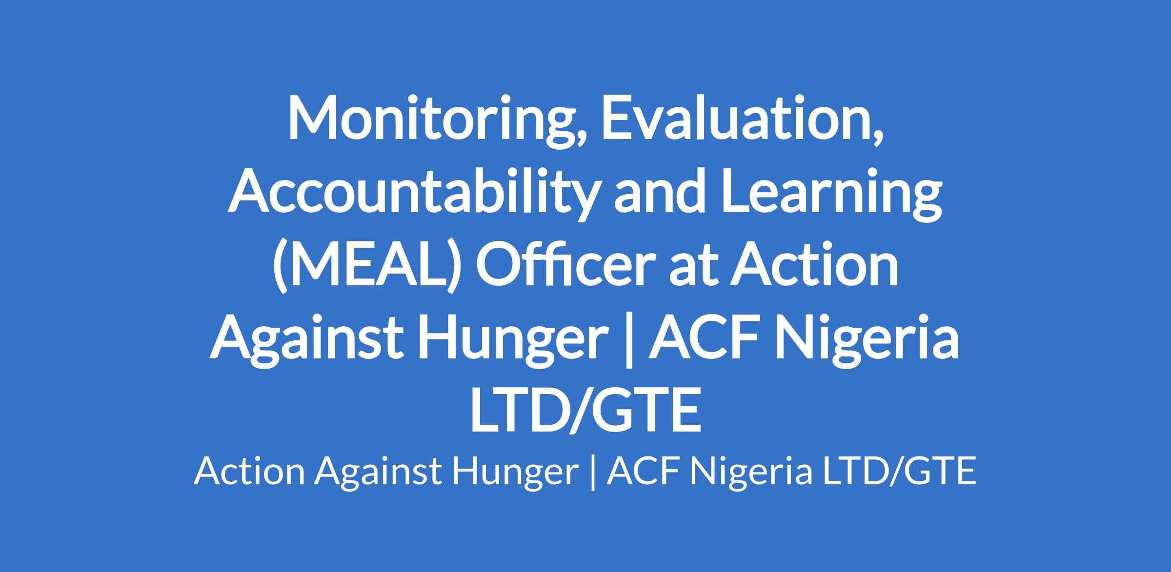 Action Against Hunger is currently looking to fill the role of MEAL Officer Ensure implementation of the MEAL plan for the FSL, Health and Nutrition and WASH programmes including monitoring progress against planned activities, critical milestones and targets as well as providing support and guidance to program officers and CSO/government counterparts to ensure that the data collection, data management and reporting, are of the highest possible quality.